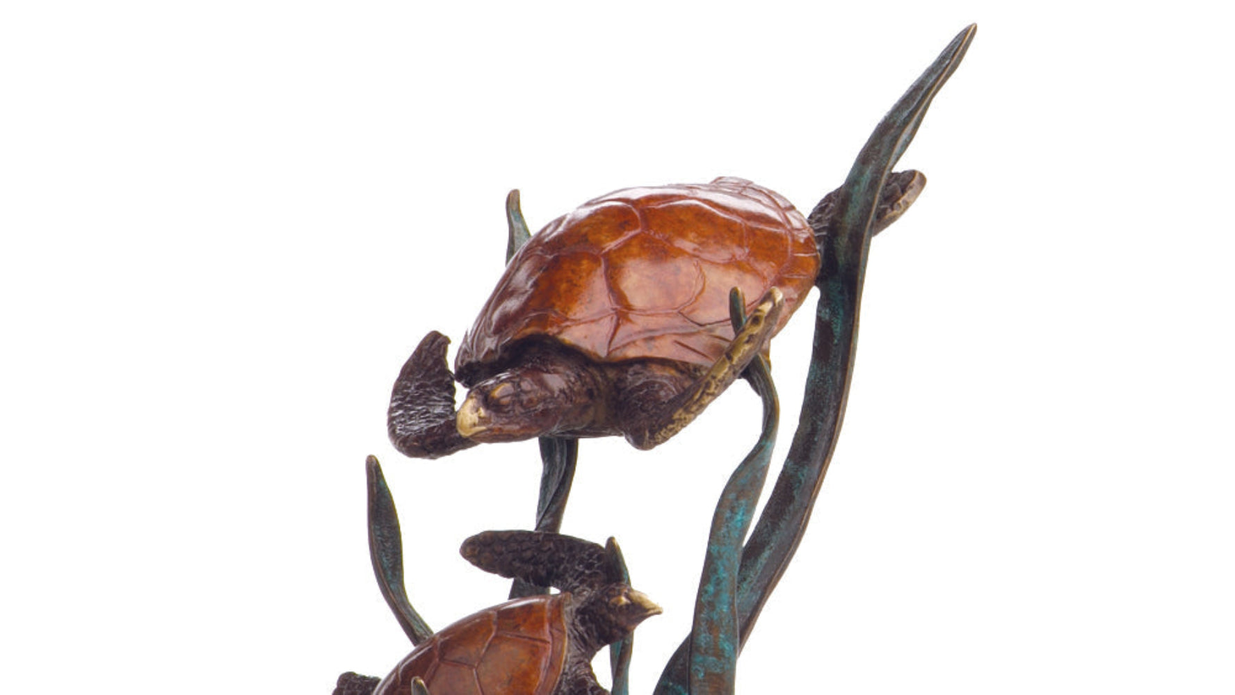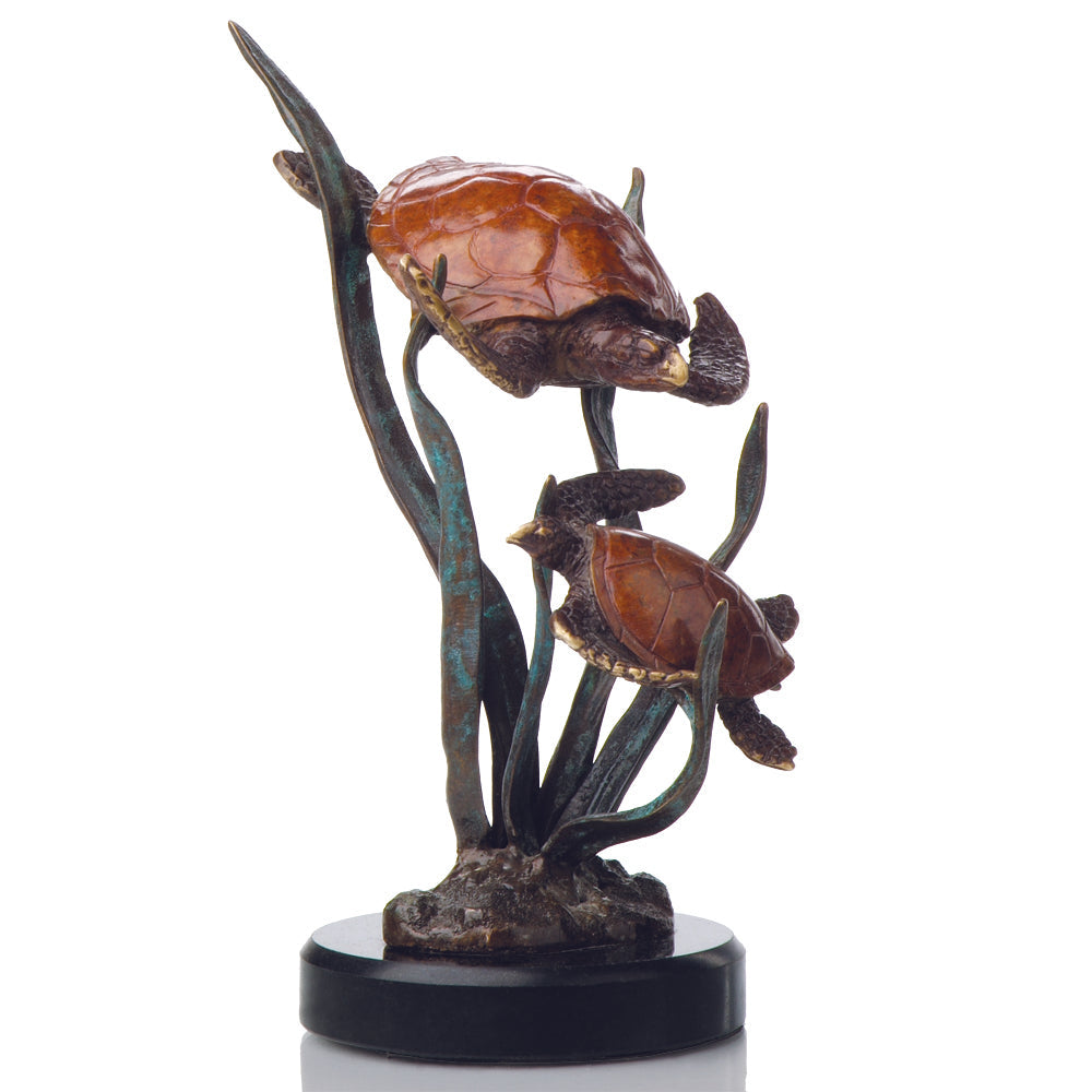 SKU - SPI80099Tortuga’s Pride Double Turtles Sculpture – 8.5" Solid Brass Sea Turtle Pair for Coastal or Ocean-Inspired Decor