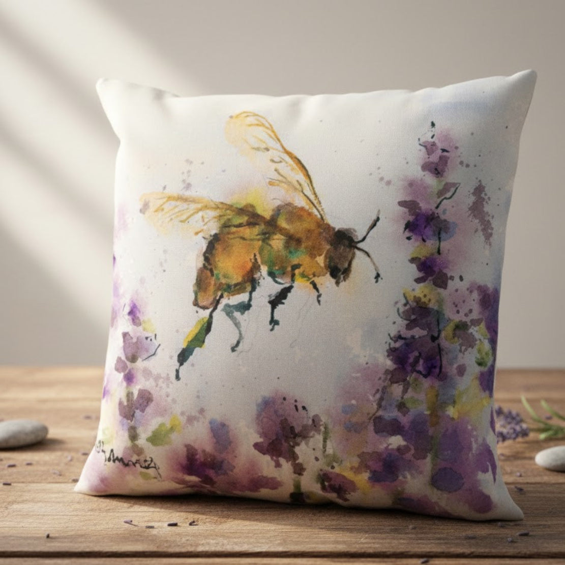 Square throw pillow in Bee With Purple Flower Climaweave fabric adds nature-inspired charm to indoor and outdoor seating areas. The 18 x 18 inch size offers balanced comfort and decorative presence for sofas, beds, benches, or patio furniture. Crafted from 100% polyester, the durable Climaweave fabric is designed for everyday use and seasonal styling. The multicolor bee and floral motif complements garden, farmhouse, and contemporary décor themes. Care is simple—brush off loose dirt, clean with a mild soap solution, rinse thoroughly, and allow to air dry. This decorative pillow combines visual interest, comfort, and durability for living spaces and outdoor settings.
