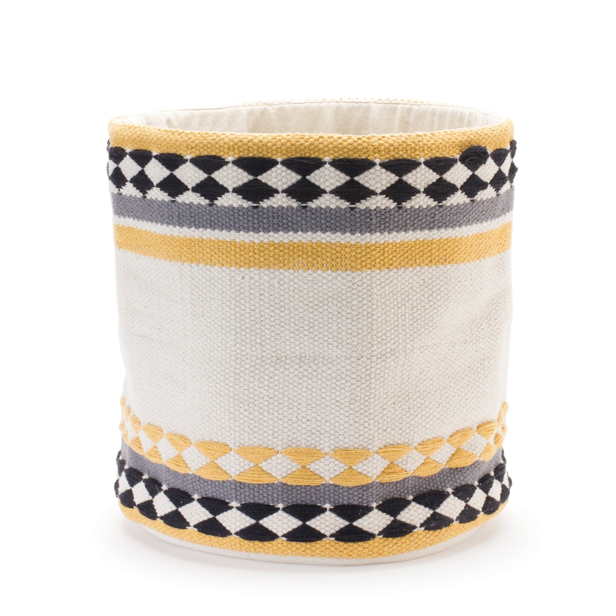 Striped Cotton Basket Set – 16"D & 14"D Decorative Storage Baskets (Set of 2) Cream/Brown Cotton Home Organization by Melrose