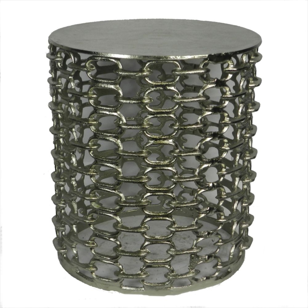 Acting like a stool as well as side table, this stool is something you will not want to miss bringing home. Made from good quality metal, it will stay in prim condition for years. This stool is painted in silver and has a shiny finish. The stand of the stool features interlocking pattern. Use it to sit or to display a figurine or vase and. You can keep it in the living room, bedroom, guest room or outside in the patio and garden.