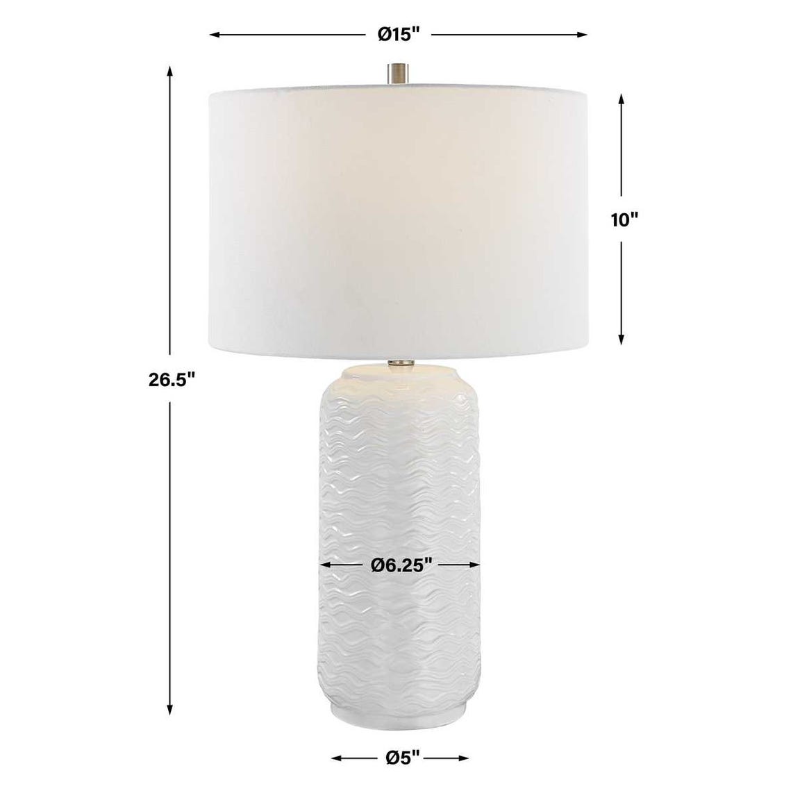 Table Lamp 26.5"H White Ceramic Base with Brushed Nickel Accents – Modern Wavy Texture with White Linen Shade By One Pixie Street