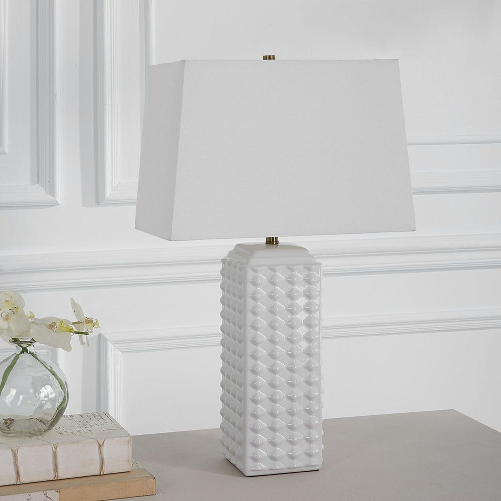 Table Lamp Gloss White Ceramic Design 25" H Rectangular Shade Lamp by One Pixie Street