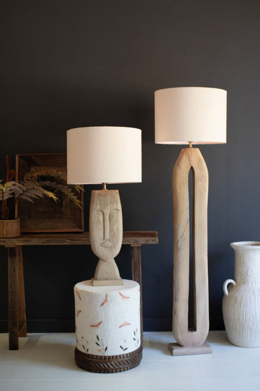 Table Lamp – Wooden Face Sculpted Base – 36"Tall Accent Lighting by Kalalou