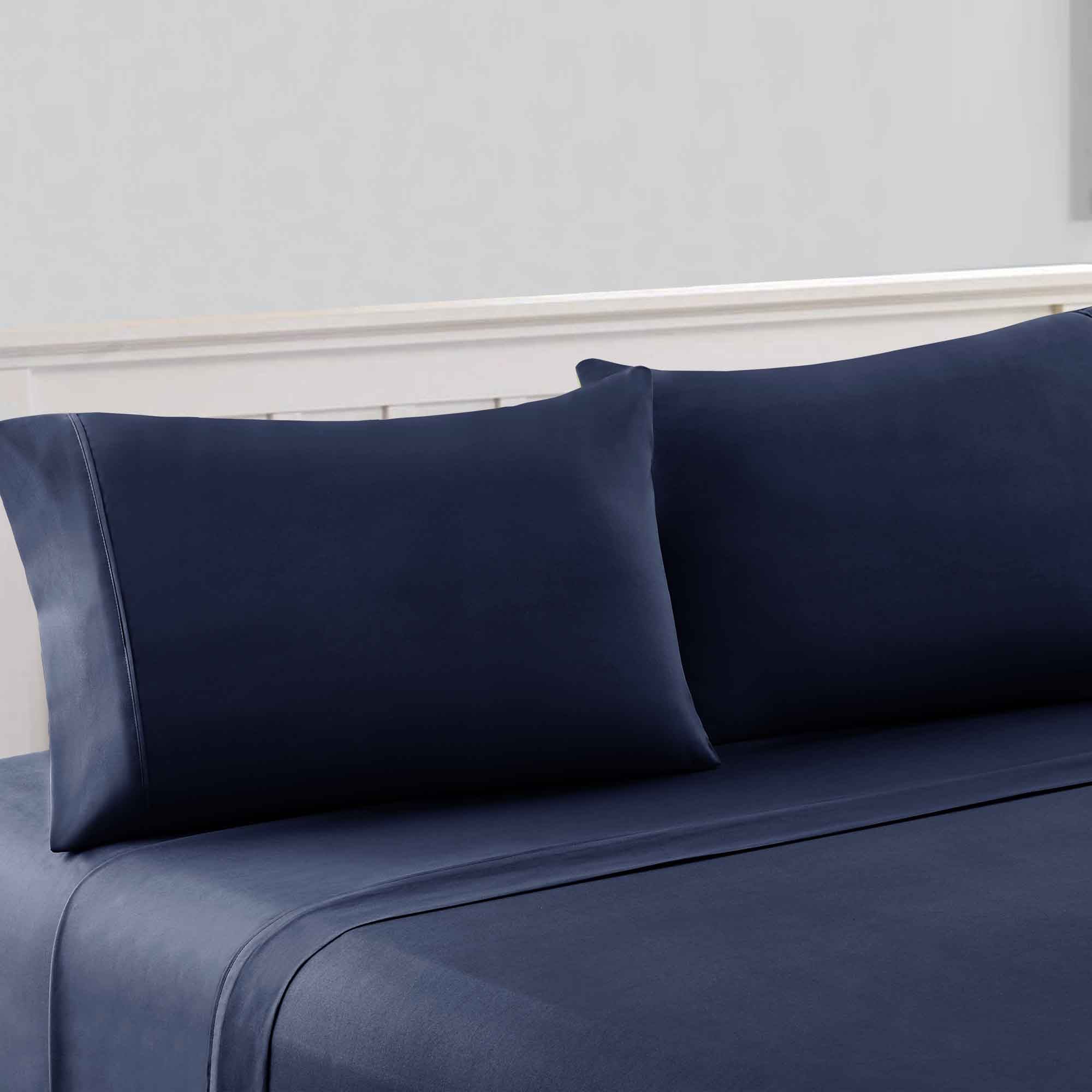 Enjoy a sophisticated bedding with this softness of this California king size sheet set which includes 1 flat sheet, 1 fitted sheet with deep pocket and 2 pillowcases. To offer you a comfortable sleep, it is crafted using microfiber with 1800 thread count that makes it an ideal set for sensitive sleepers. Available in a navy blue color, it uplifts the overall character of your bedroom while offering a comfortable space to sleep.
