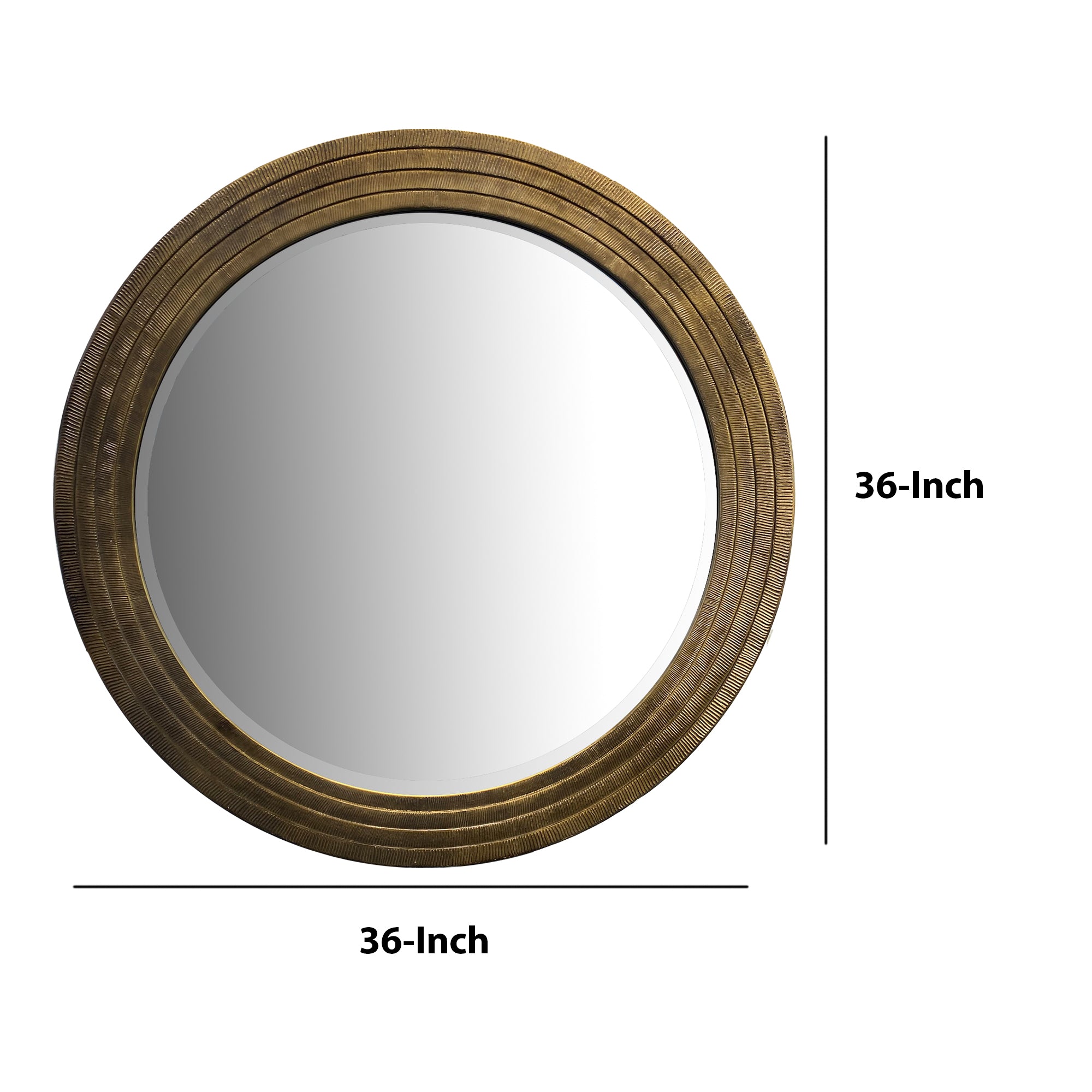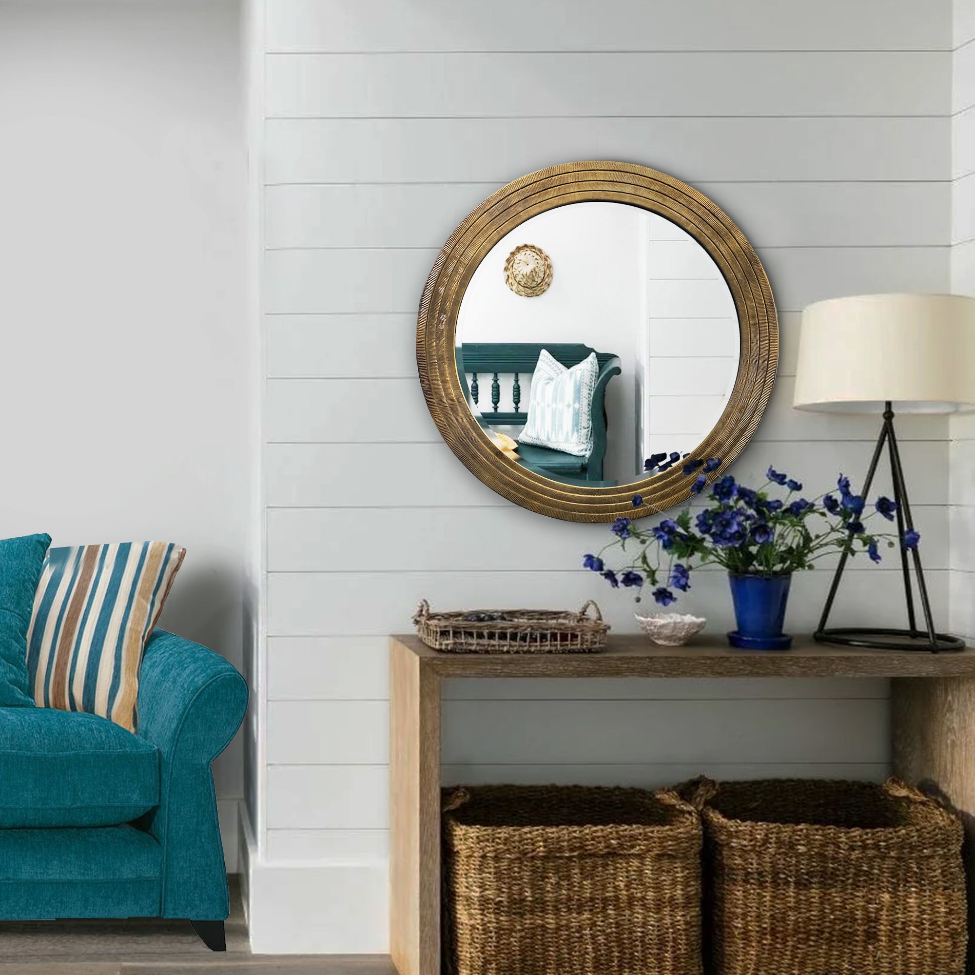 Reminiscent of farmhouse style this Wall Mirror will be a perfect addition to embellish your existing Decor setting. Encased with solid wood frame with multi layered hand carved details, it comes in a round shape with beveled mirror insert. Incorporated with mounting hardware on the back for easy installation, it can be placed on the walls of your living space to create an inviting and enchanting appeal.