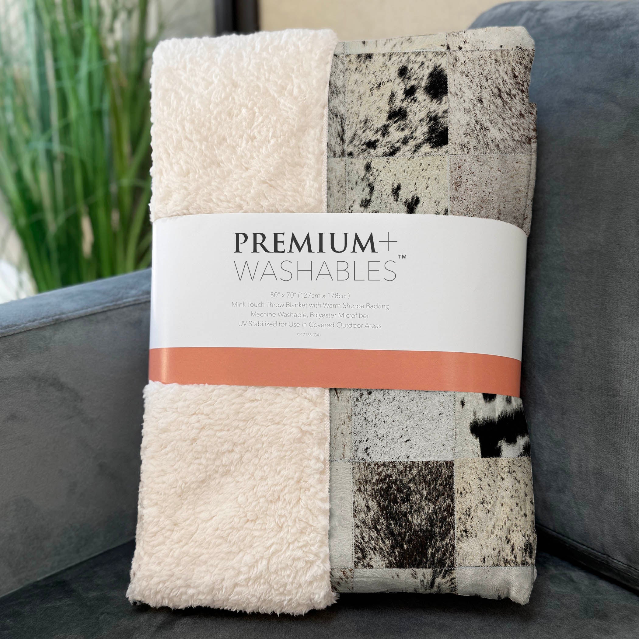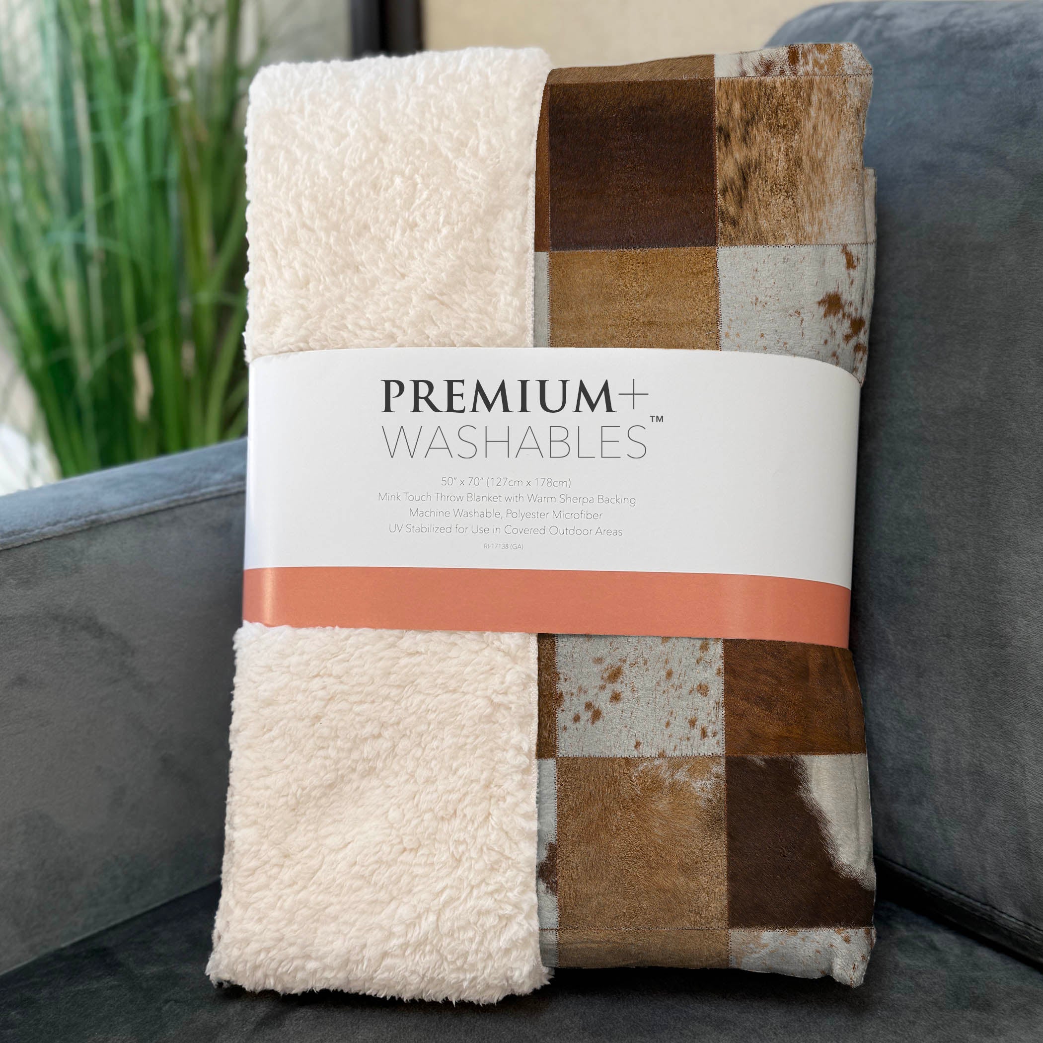 Featuring a cowhide inspired small box pattern, this blanket brings adventurous appeal to modern and rustic interiors. The soft touch polyester microfiber front pairs with a plush reverse for added comfort and warmth.