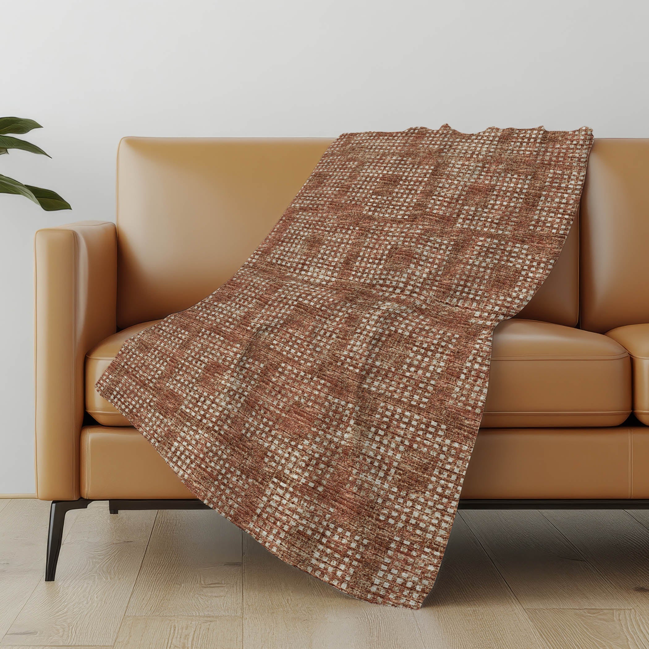 Throw Blanket Soft Touch Polyester With Square Pattern 50" Height x 70" For Sofa