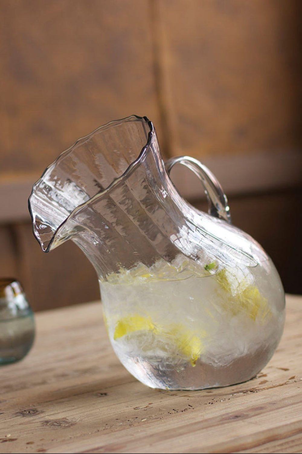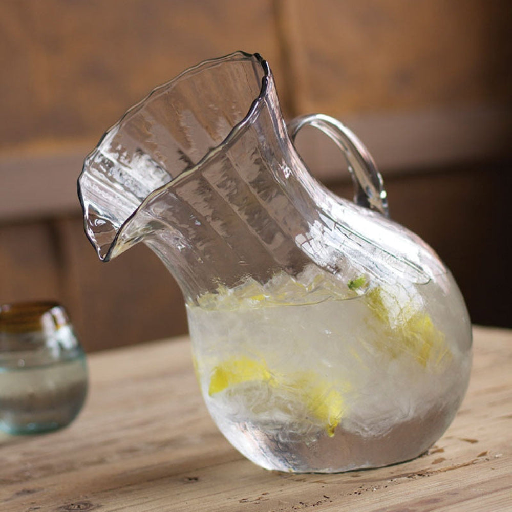 - Hand-blown clear pitchers crafted from recycled Colombian glass