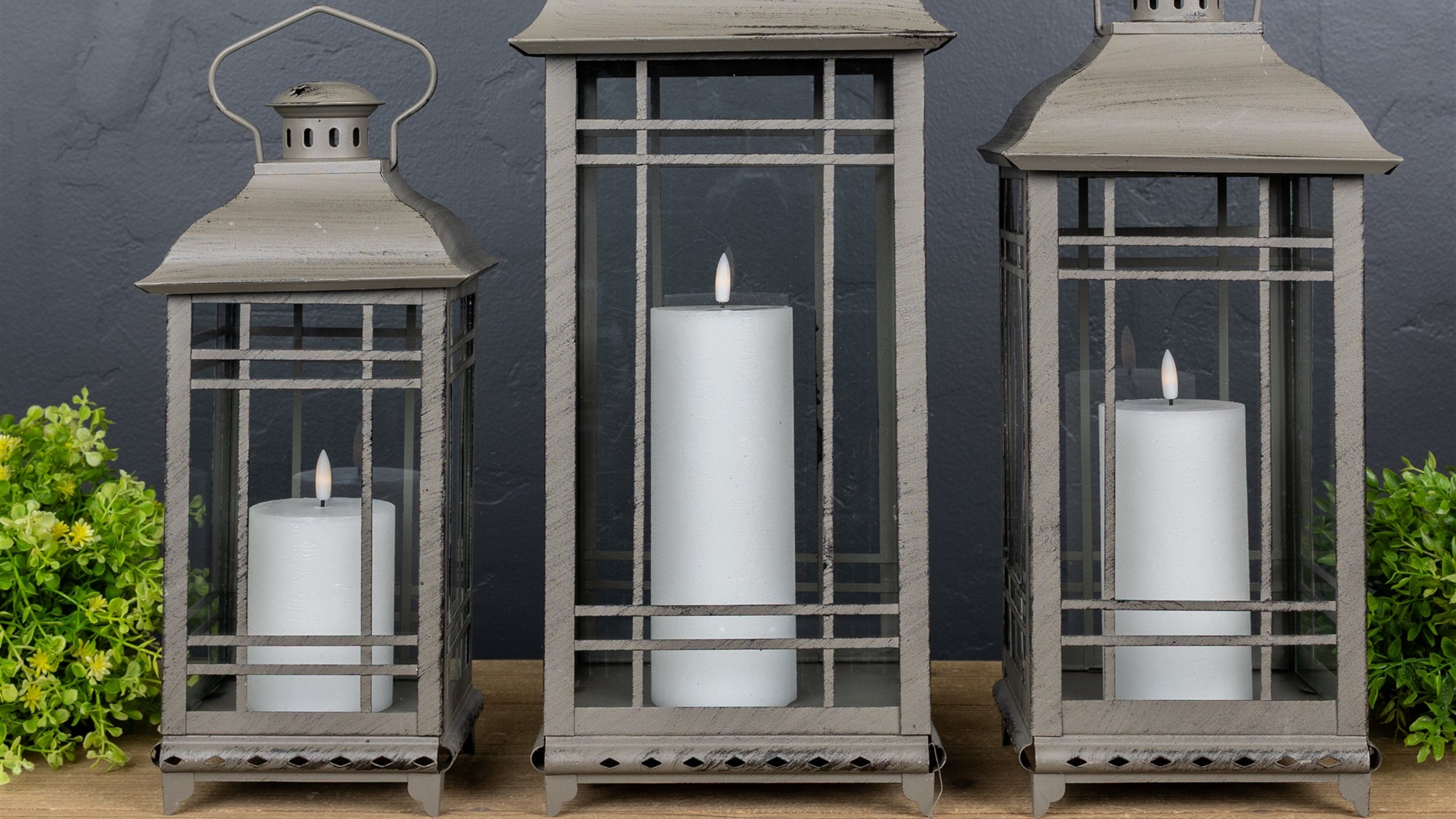 This set of three brown metal and glass lanterns adds a versatile and charming accent to indoor or covered outdoor spaces. The lanterns measure 6.25 × 6.25 × 14 inches, 7.5 × 7.5 × 17 inches, and 8.5 × 8.5 × 20 inches, creating a visually balanced display. Constructed from durable metal with a weathered brown finish and clear glass panels, these lanterns combine rustic charm with lasting quality. Use them with real wax or LED candles, or repurpose them for DIY floral arrangements. Perfect for seasonal decorating or everyday home styling, this trio provides a timeless and welcoming accent for tabletops, mantels, or entryways.