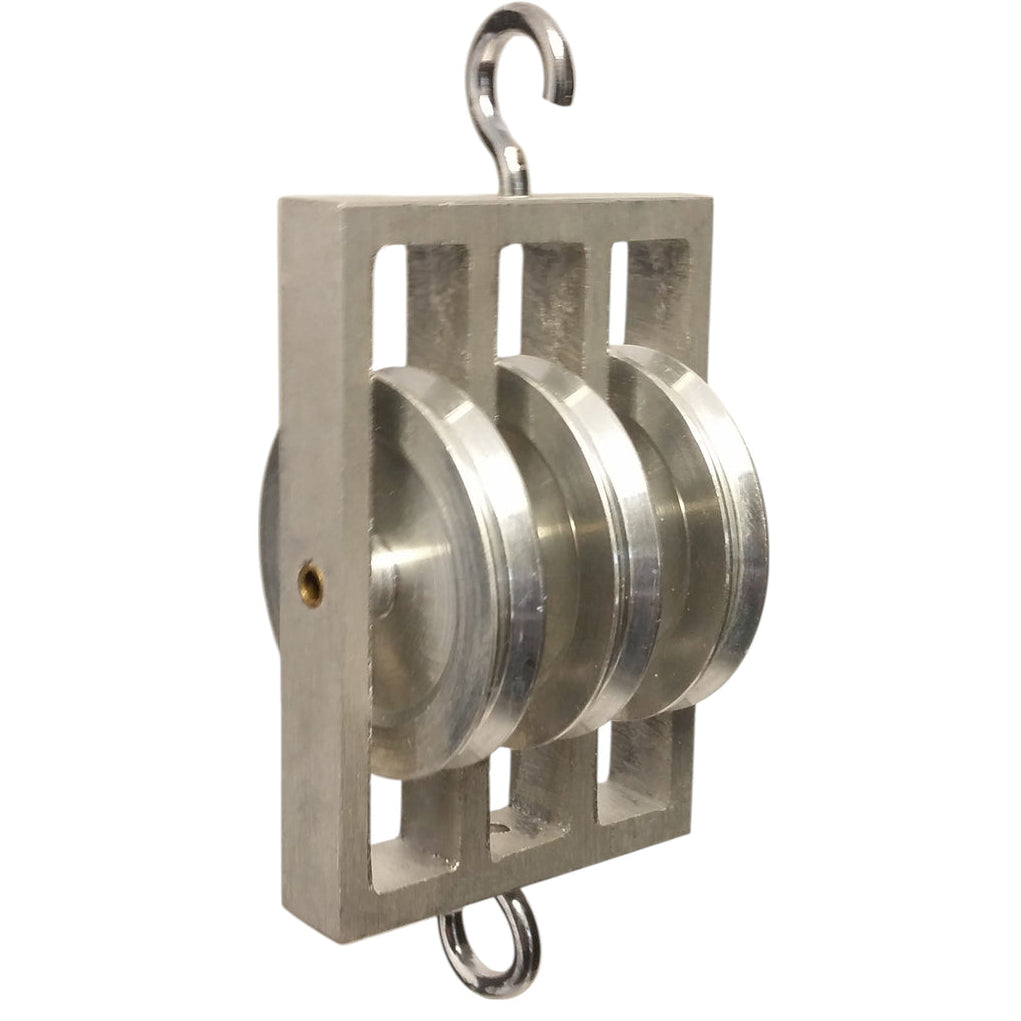 Triple Parallel Pulley – Three 50mm Low-Friction Aluminum Wheels with Hooked Metal Frame by GSC International Inc.