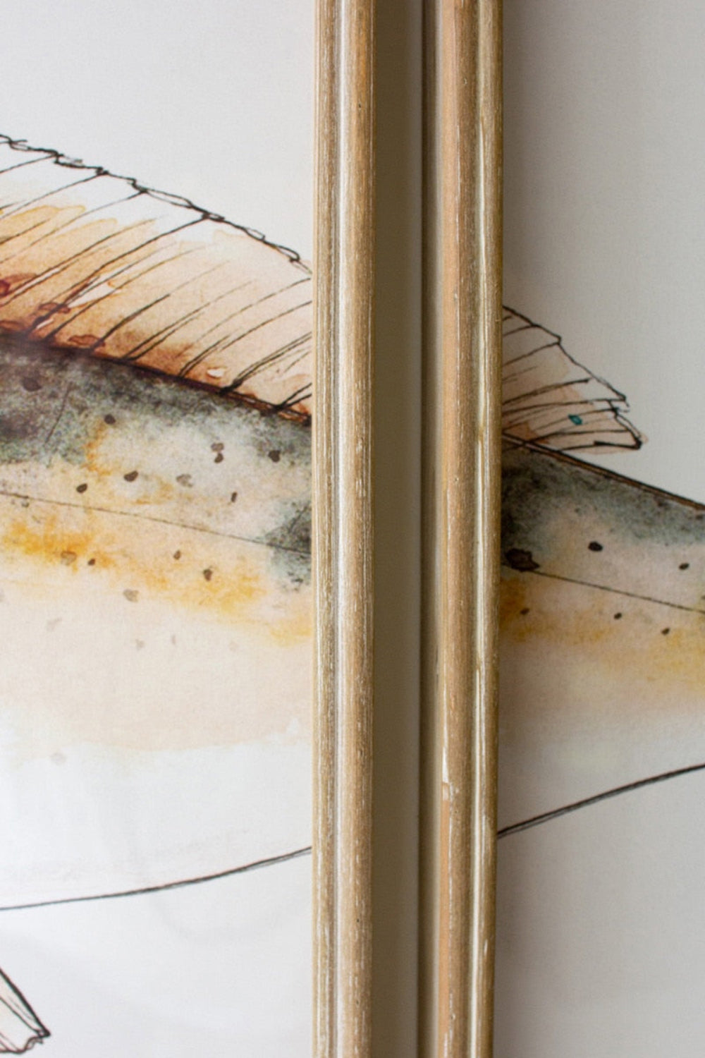 Triptych Trout Framed Wall Art Set – 25.5"H Wood & Glass Whitewashed Printed Fish Art (Set of 3) By Kalalou