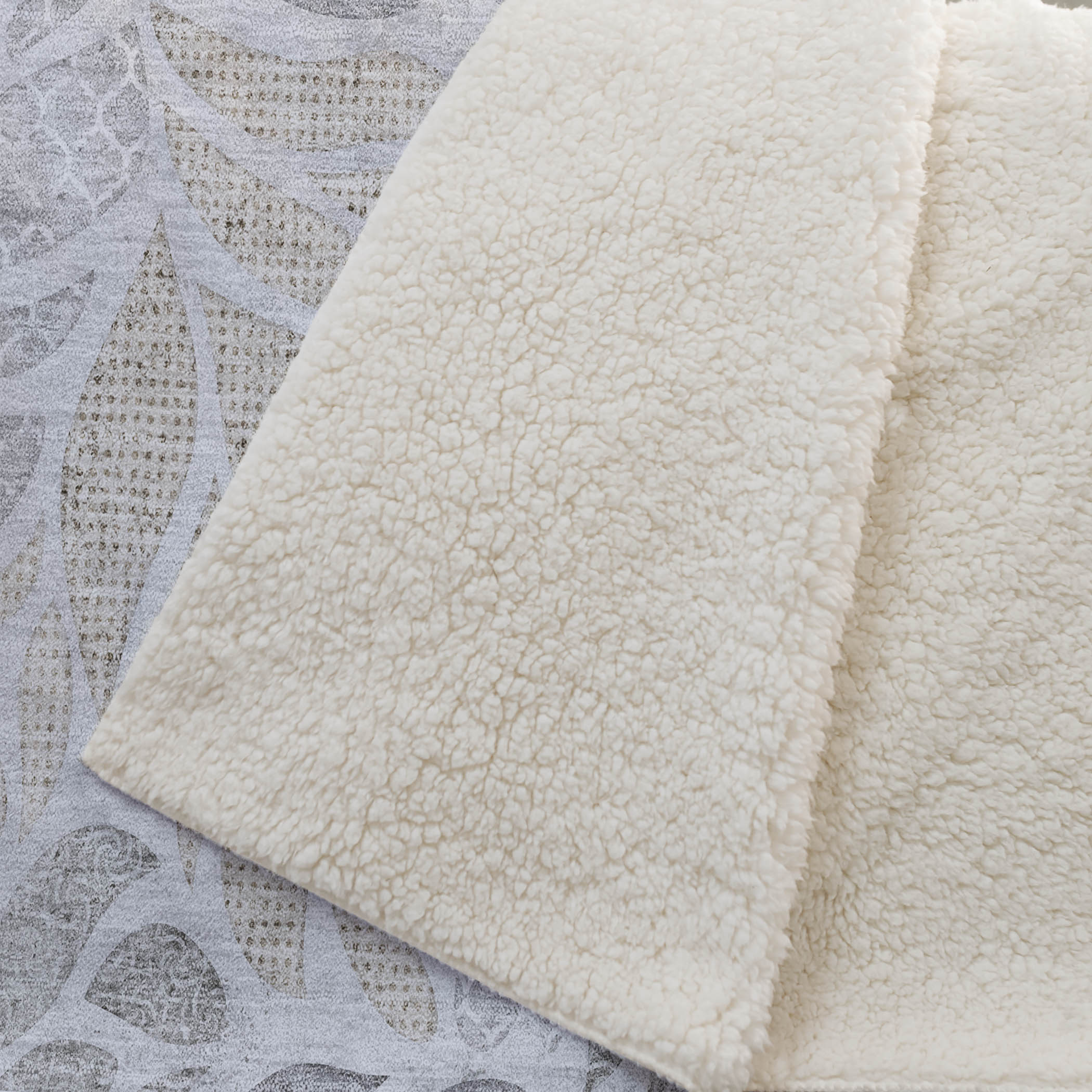Patterned rug with leaf design on a white background