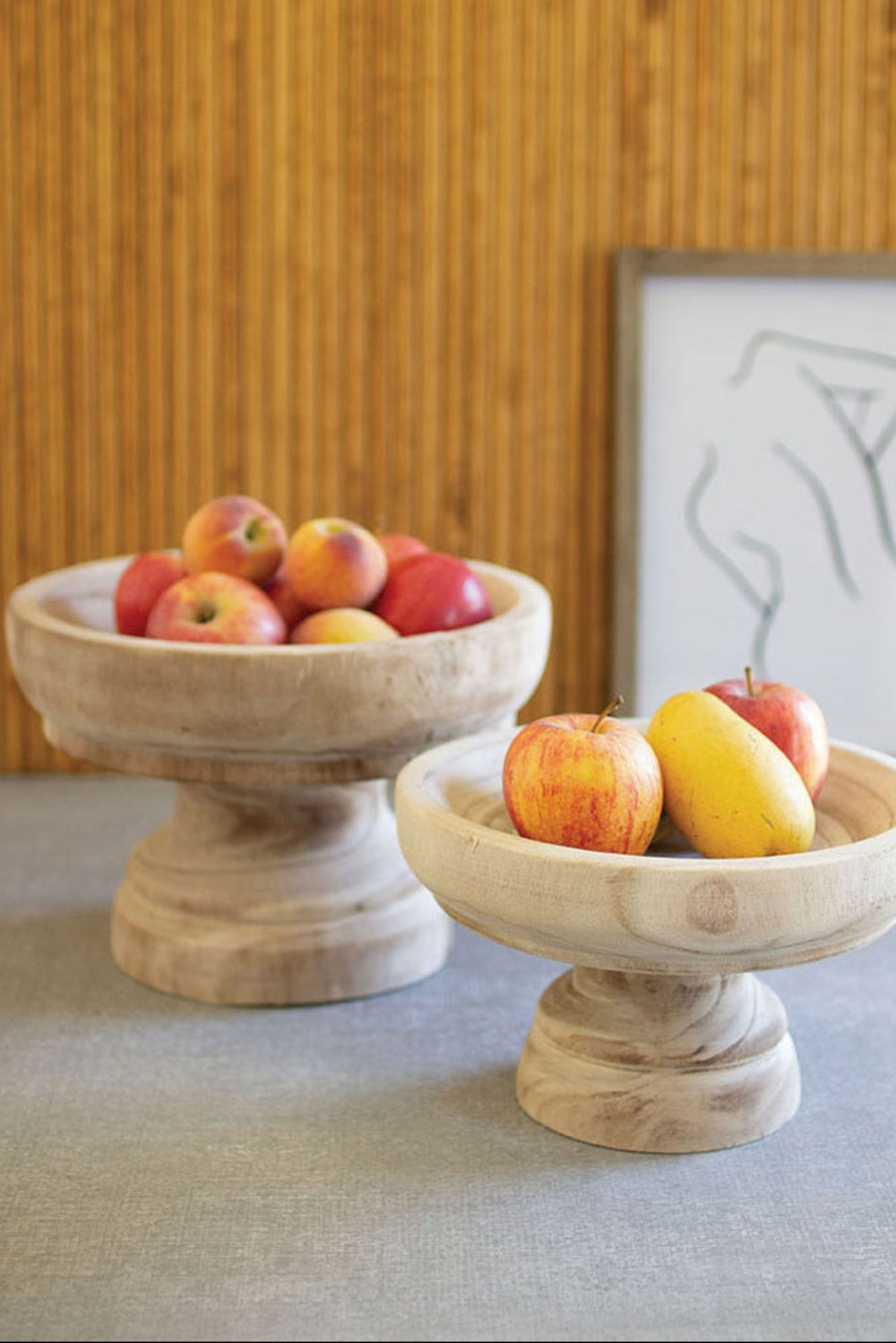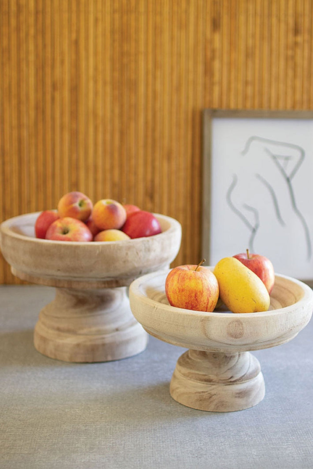 SKU - KAL-CFAN1038Turned Wooden Compotes, Natural Finish Decorative Bowls, Set of Two