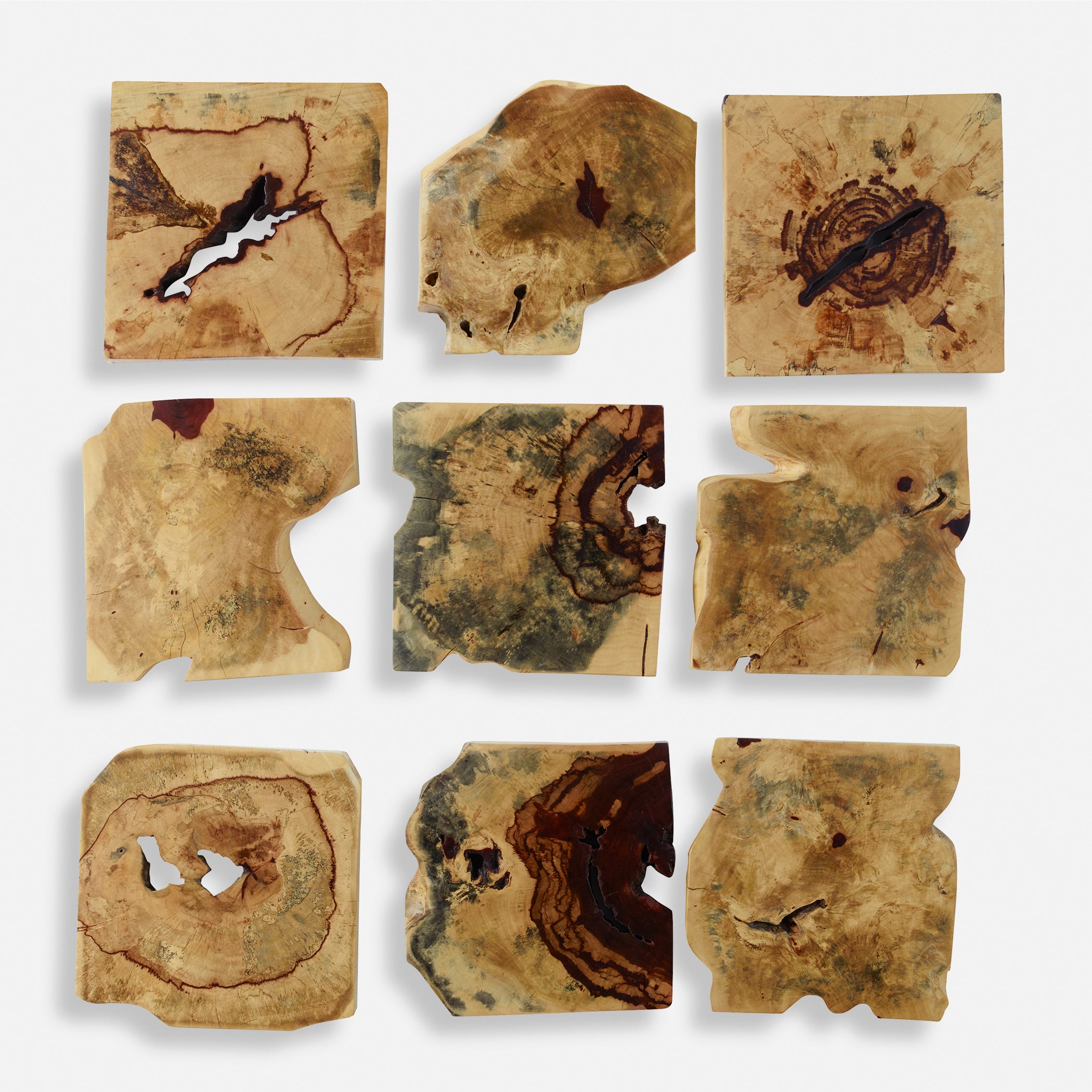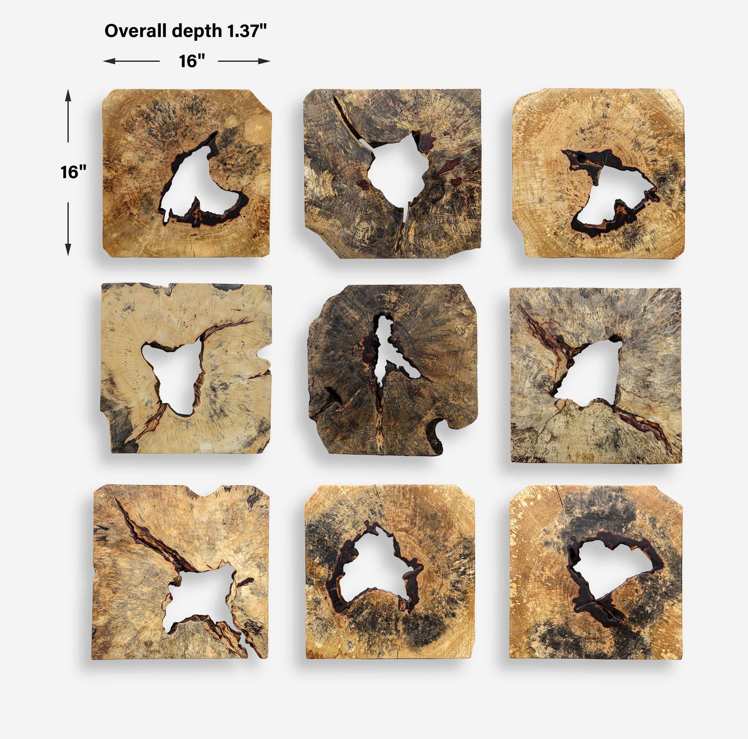 Set of 9 wall décor pieces made from solid tamarind wood.