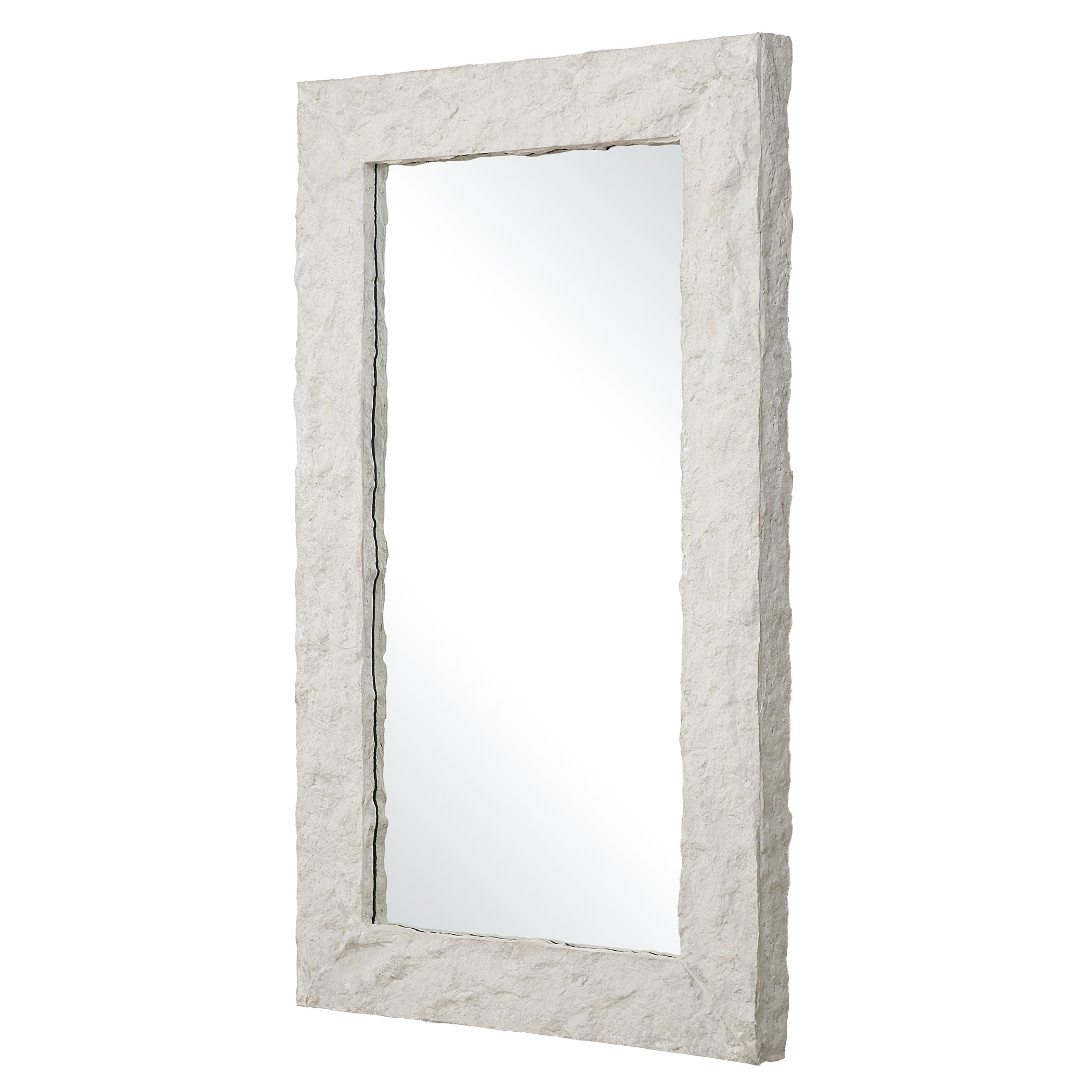 uarry Rectangle Stone Veneer Mirror with Aged Ivory Textured Finish