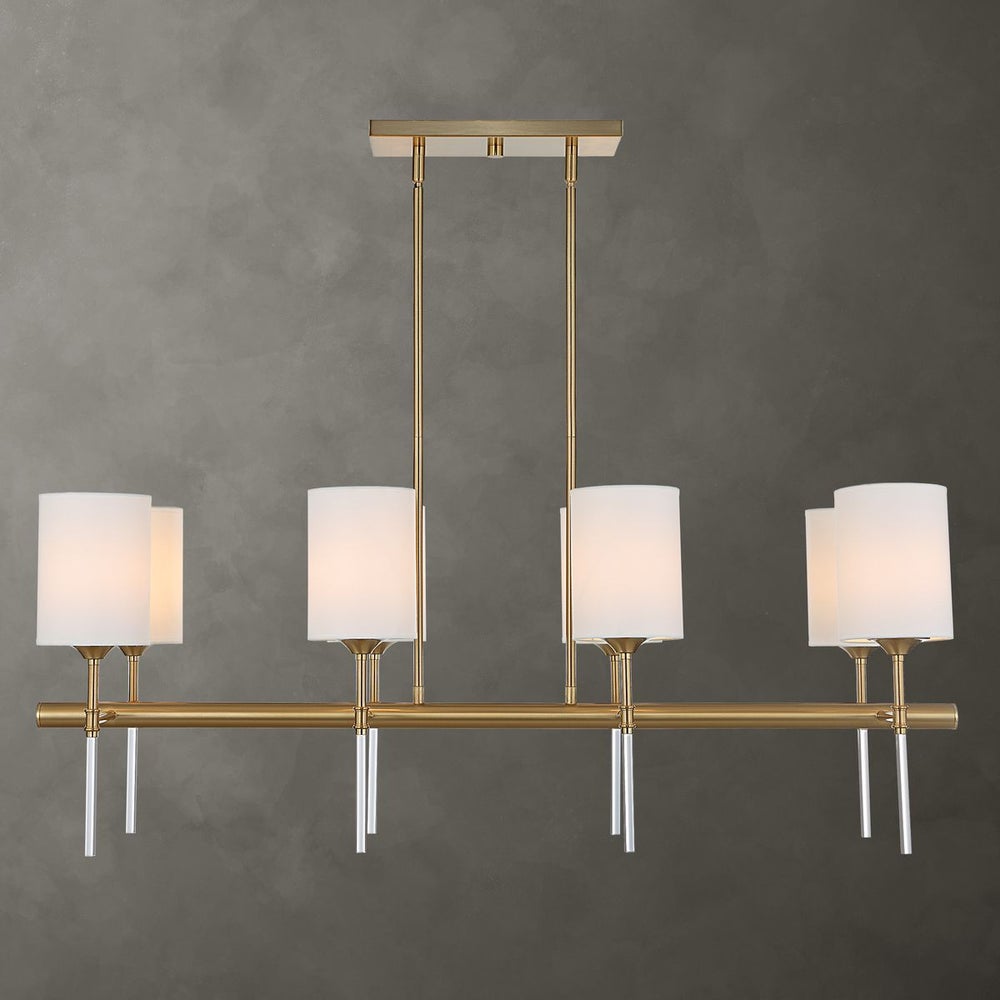 SKU - UT21388Awyr 8 Light Linear Chandelier with Brass Finish and Acrylic Accents