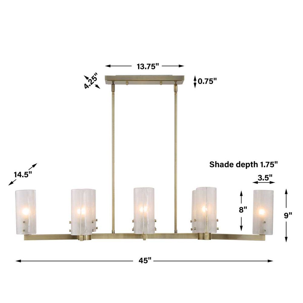 Uttermost 21392 Mistie 8 Light Linear Chandelier Antique Brass with Etched Glass