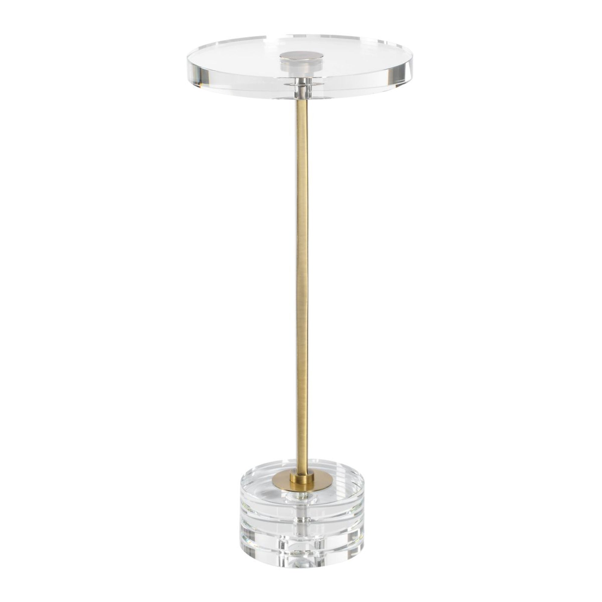 Elevate your space with the Uttermost Groove Crystal Drink Table, combining sleek iron with a sparkling crystal tabletop. Its contemporary design adds a touch of luxury and sophistication to any room.Compact & Functional Design Measuring 10.25 inches wide, 10.25 inches deep, and 23.75 inches high, this drink table fits perfectly next to chairs, sofas, or beds. Its sturdy iron frame ensures stability while the crystal top provides a striking focal point.