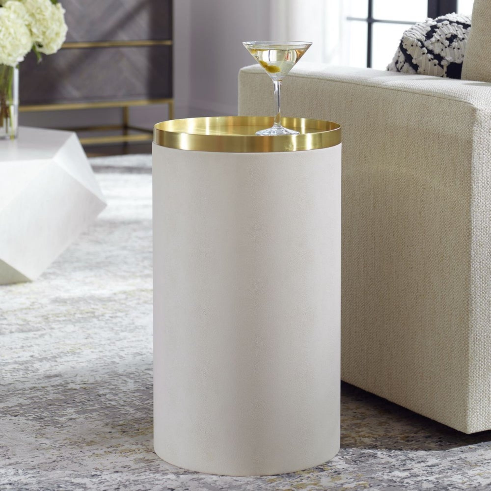 Accent Table,Accent Table & Cube,Accent Table Set,Accent Tables,compact contemporary accent table,decorative gold and white table,Geometric Accent Table,lightweight modern accent furniture,minimalist metal accent table,modern gold metal end table,small living room side table,stylish bedroom accent table,Uttermost brass accent table,Uttermost Circuit collection,white PU leather side table
