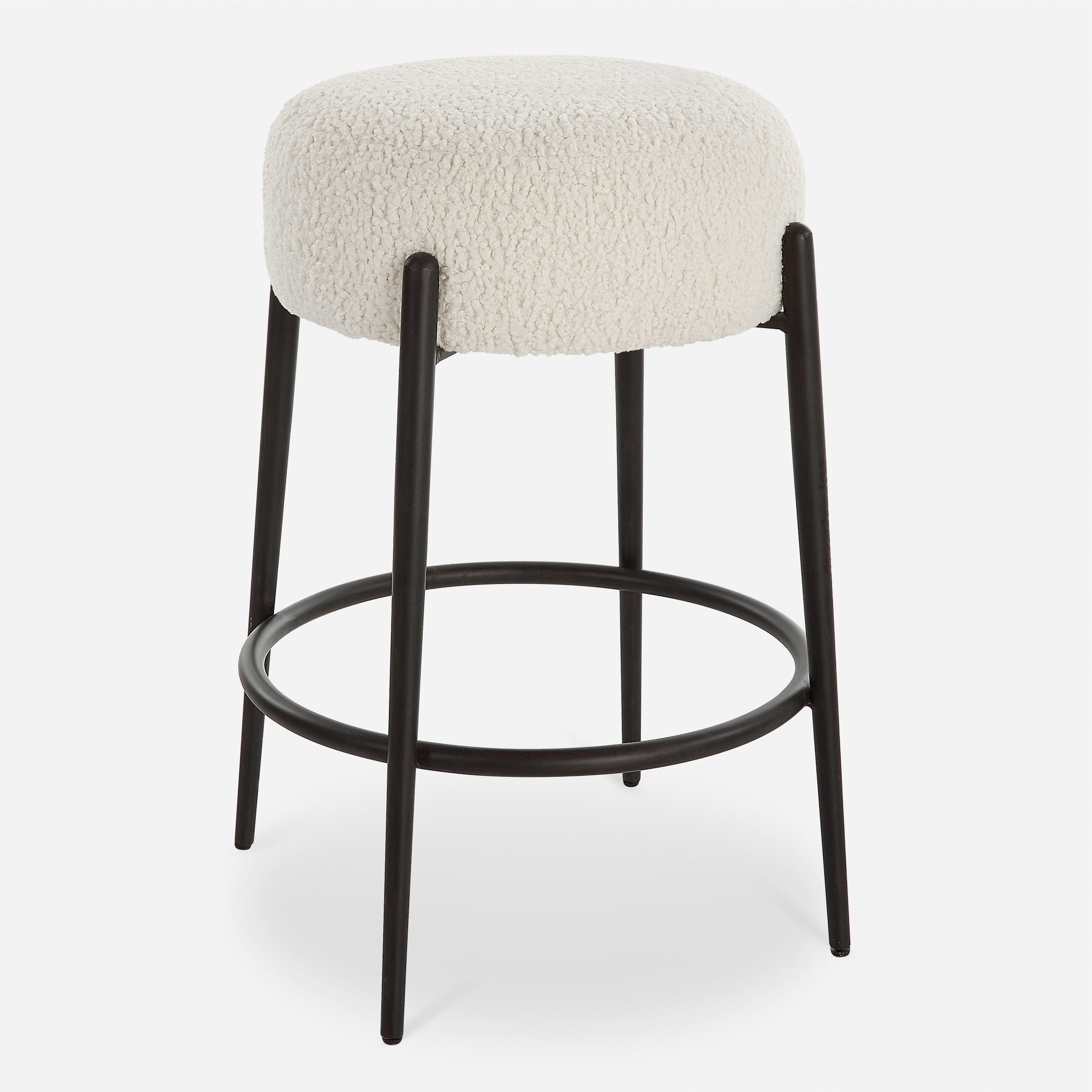 Uttermost Cozy Faux Shearling Counter Stool – Satin Black Legs