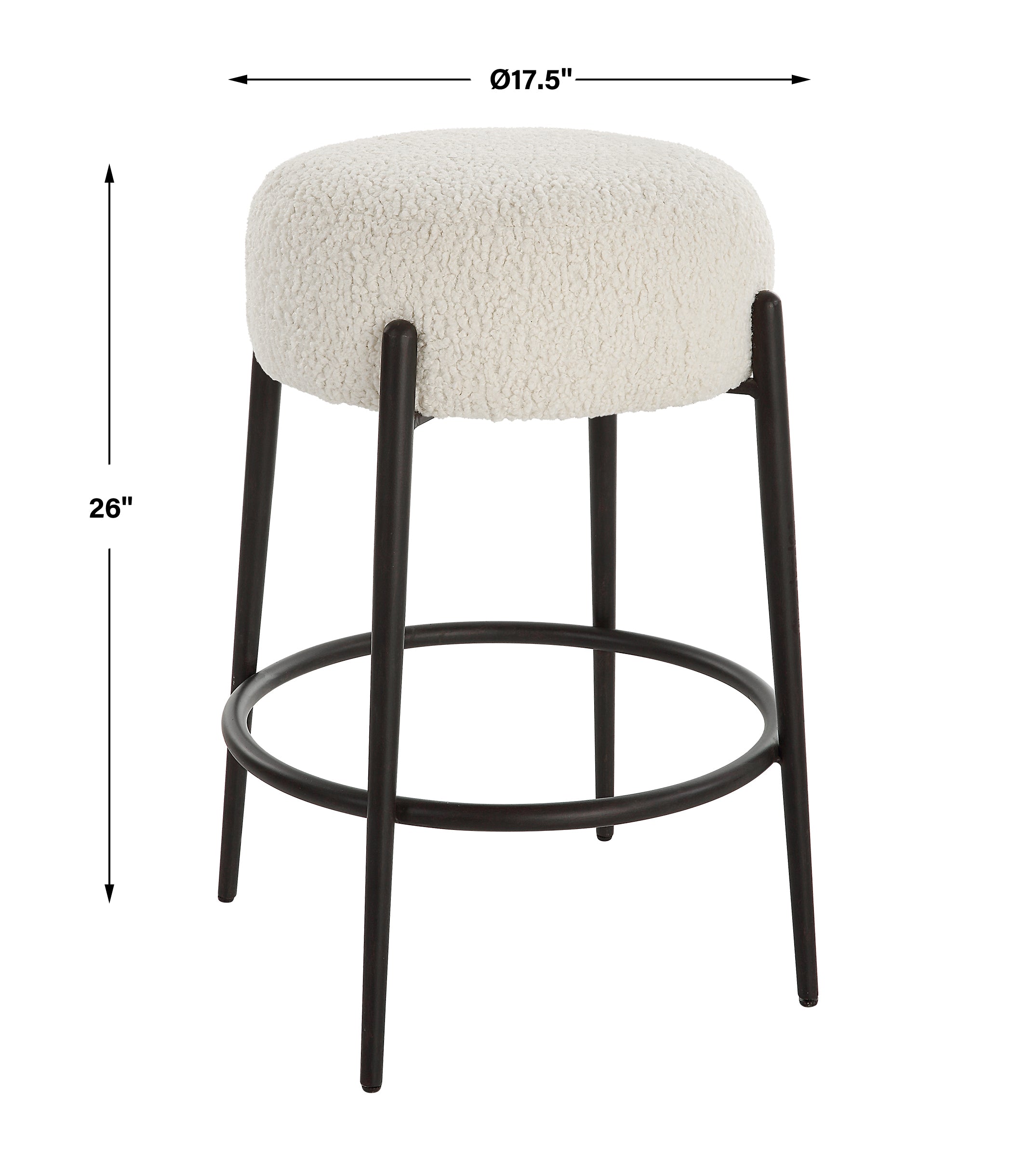 The Uttermost 23783 Arles Plush Counter Stool is a stylish seating option that combines modern design with luxurious comfort. It features a plush seat covered in white faux shearling, supported by satin black finished metal legs.