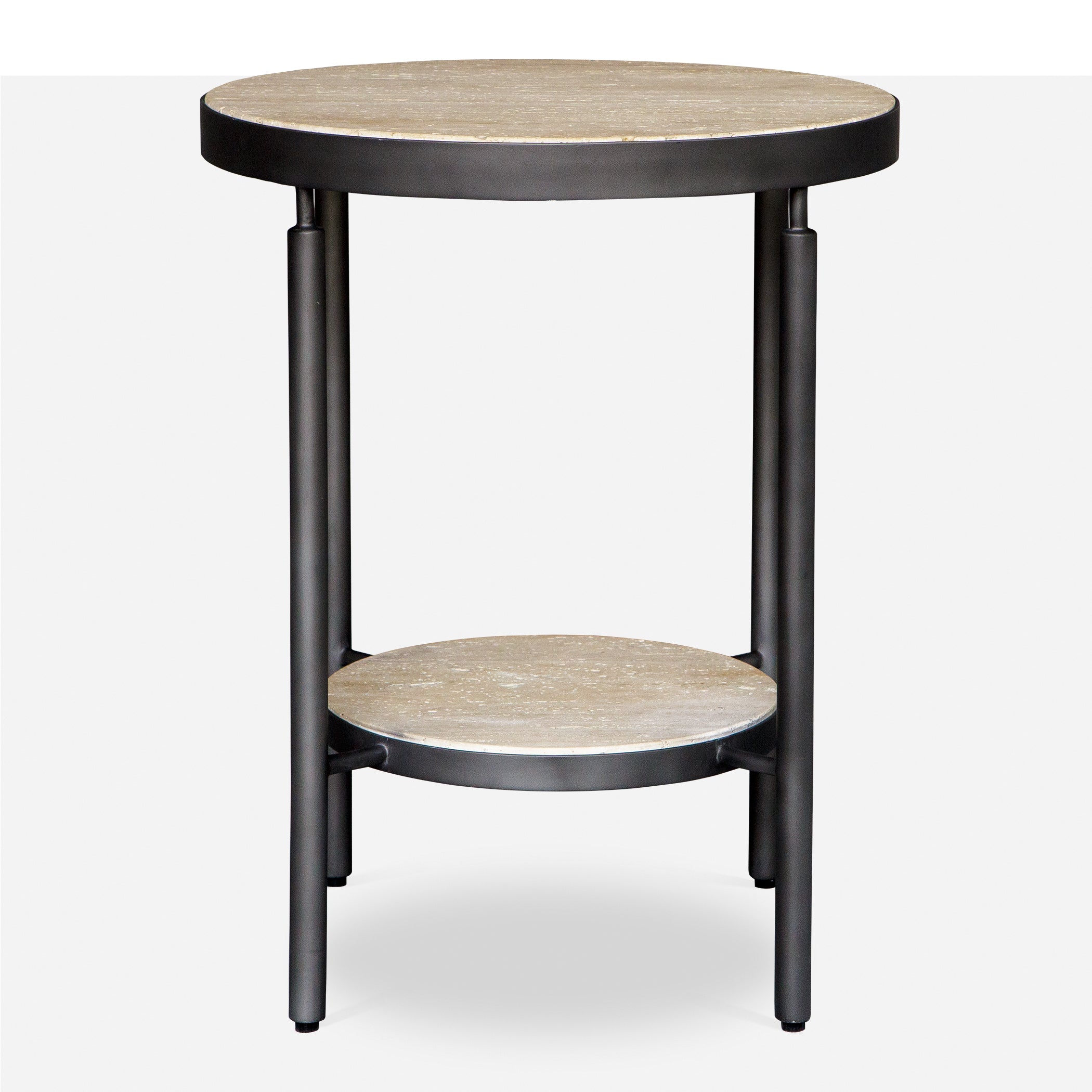 Uttermost 24113 Dauntless Travertine Side Table with Black Matte Metal Frame and Dual Stone Shelves