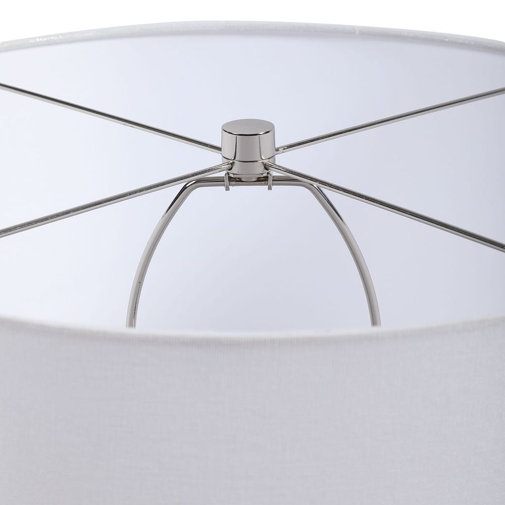Elevate your interior decor with the Uttermost Blue Waters Ceramic Table Lamp, a striking blend of coastal vibrancy and upscale elegance. Standing at 26.5 inches high, 18 inches wide, and 18 inches deep, this designer lamp features a ceramic base finished in a captivating ombre glaze—transitioning from deep cobalt and aqua tones into a subtle light blue. Accented with polished nickel and crystal details, it brings a luminous and refined touch to any living space. A crisp white linen drum shade with rolled edges completes the look, providing a clean contrast and soft illumination. This lamp includes a 3-way socket supporting a 150W Type A bulb, perfect for living rooms, bedrooms, or coastal-inspired spaces.