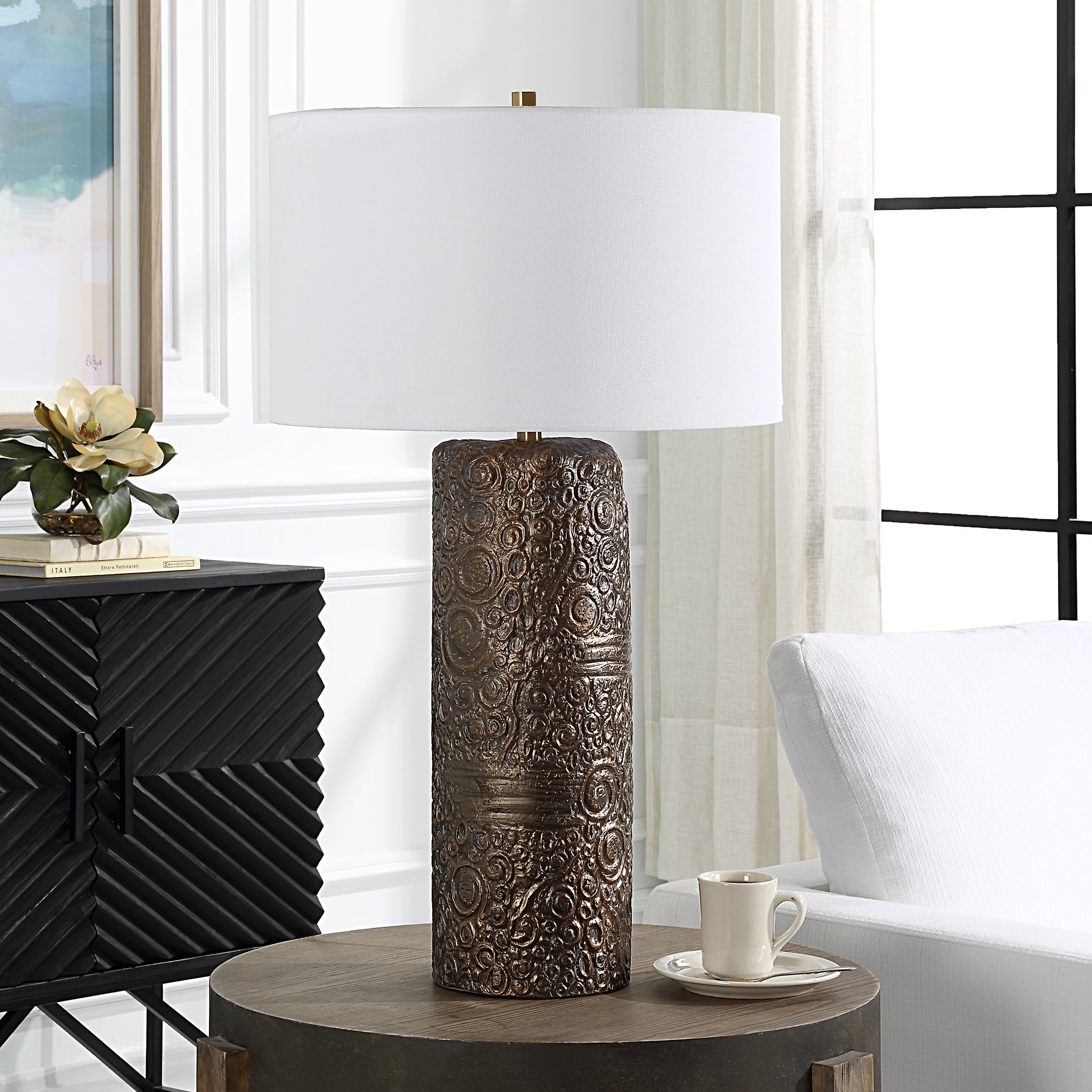 Uttermost 30361 Malaga Brass Ceramic Table Lamp with Distressed Aged Bronze Finish