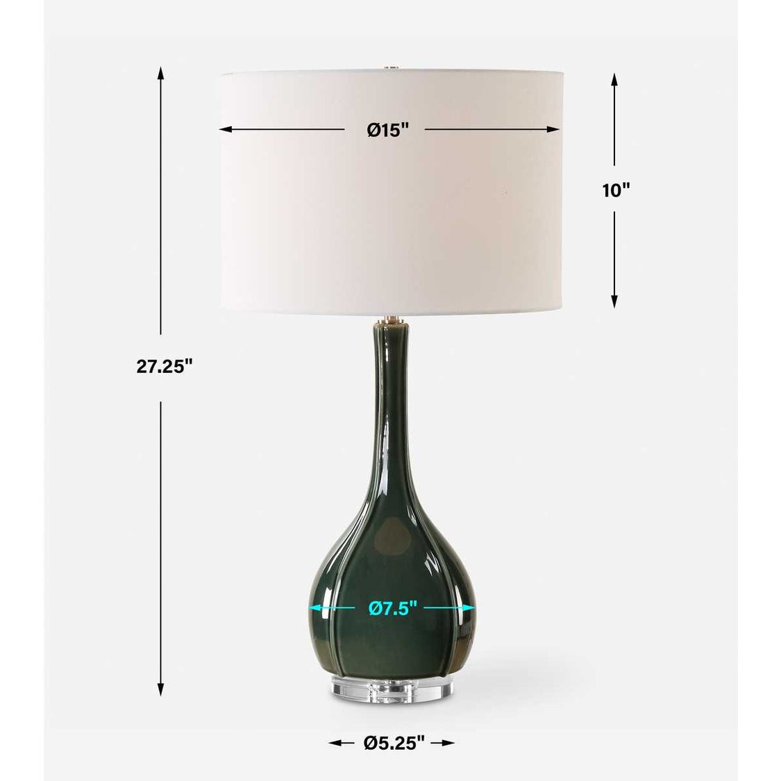 Uttermost 30395-1 Essex Green Glass Table Lamp with Crystal Foot and White Linen Shade