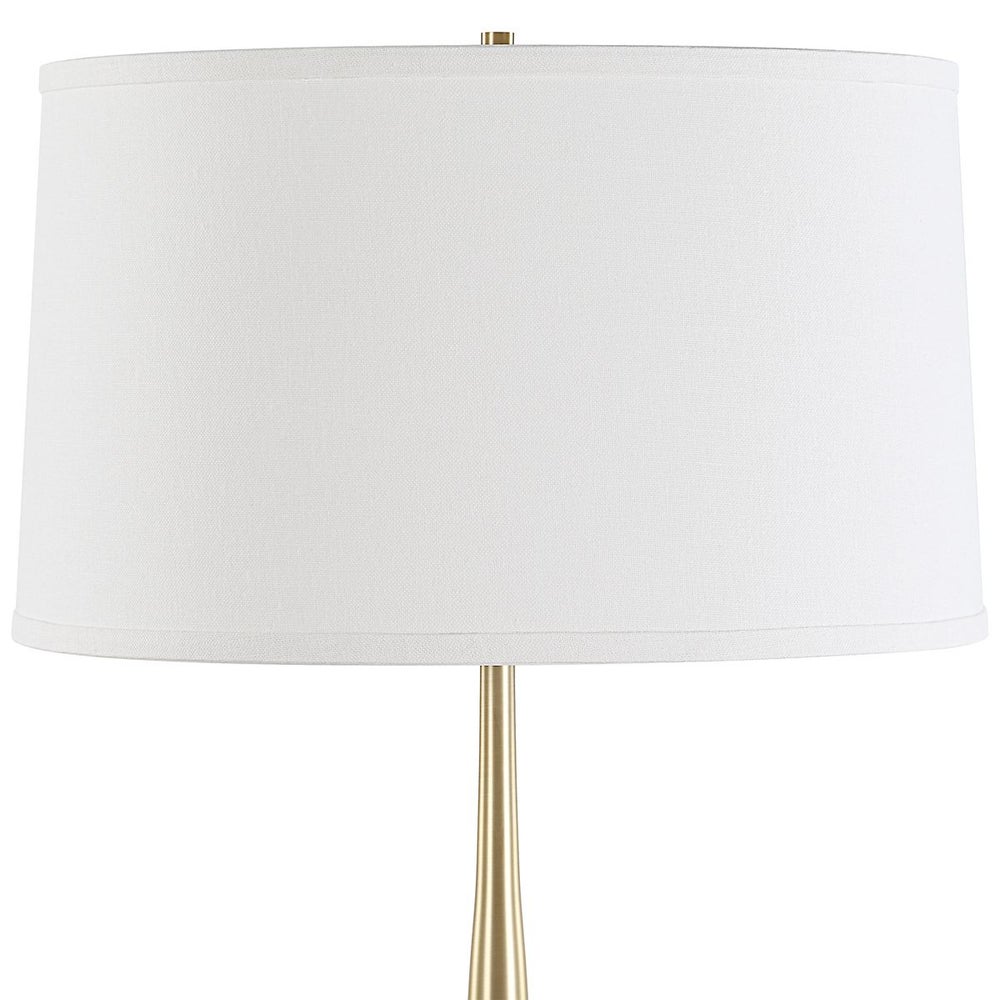 Uttermost 30433 Booker Thin Brass Table Lamp with Brown Marble Foot & White Linen Shade 34" High