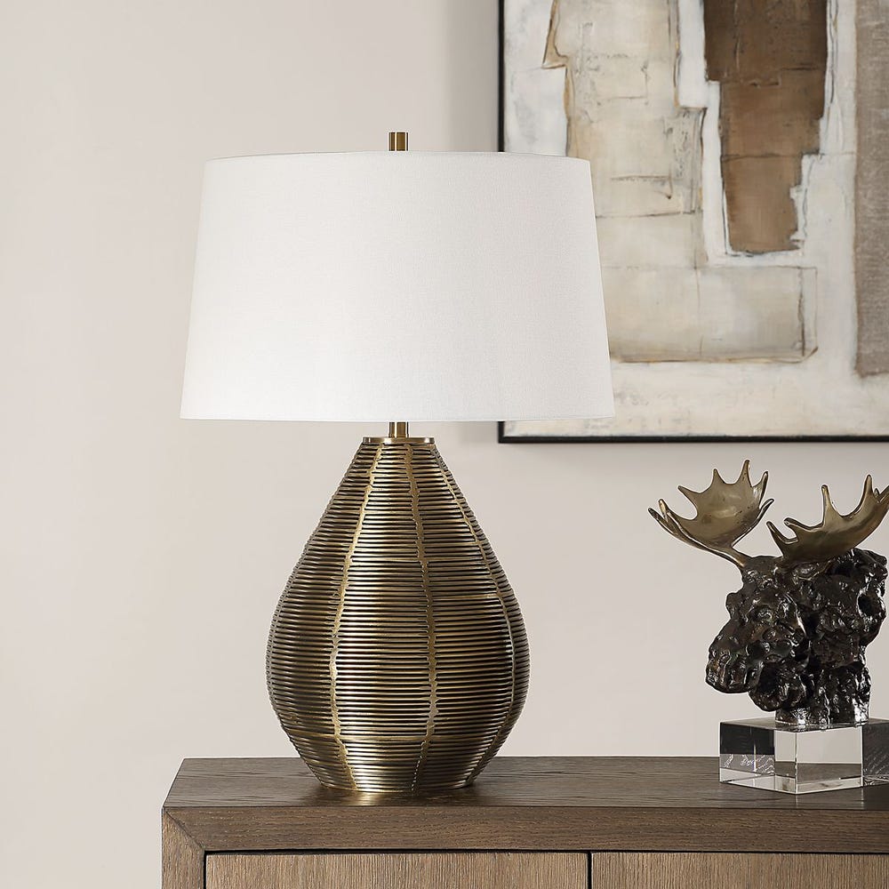 Uttermost 30463 Knowles Hand-Forged Brushed Brass Table Lamp with White Linen Shade