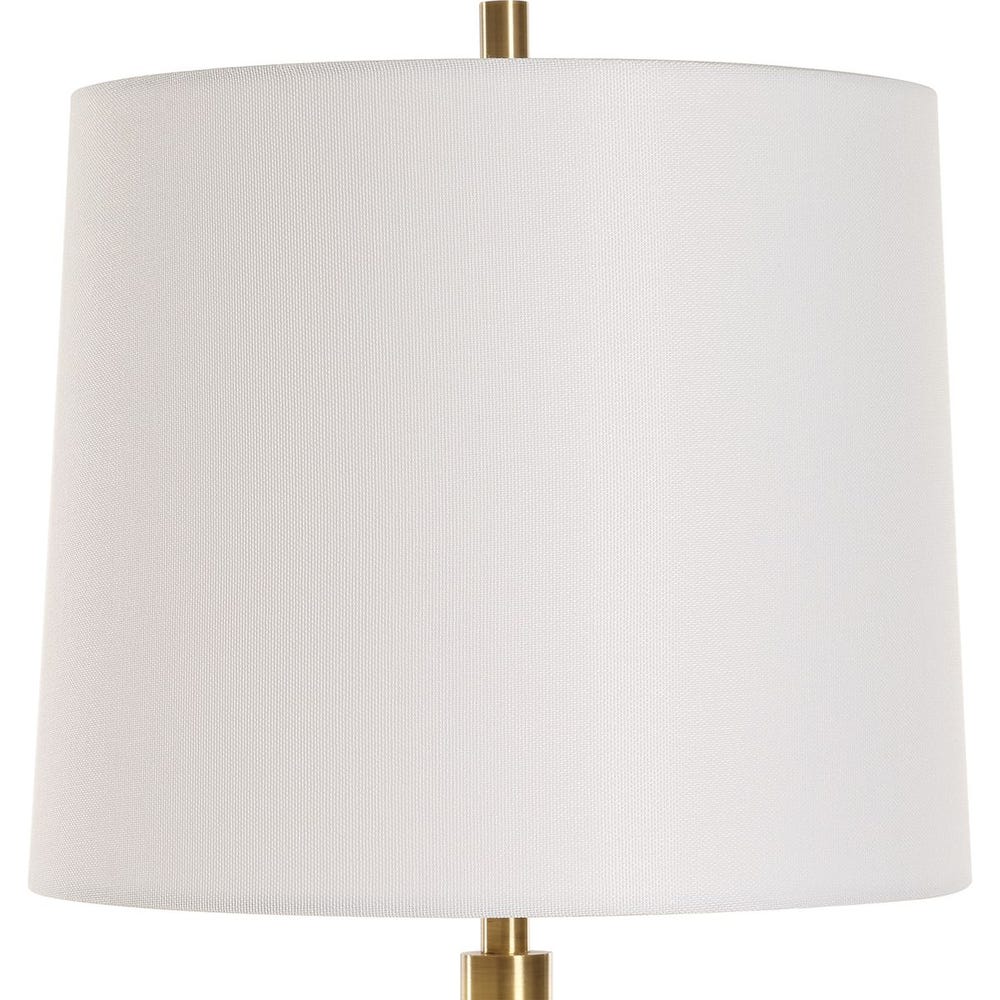 Uttermost 30466 Bledel Brass Buffet Lamp with Green Marble Accent and White Linen Shade