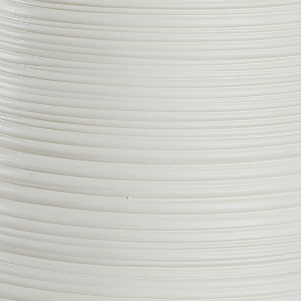 Ceramic base with warm white matte finish and horizontal ridge lines.