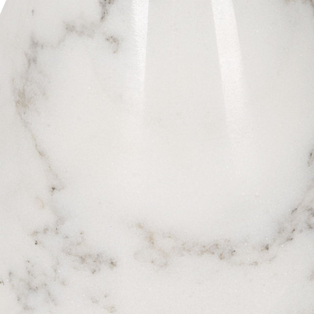 Solid white marble base adds weight, contrast, and a luxurious foundation.