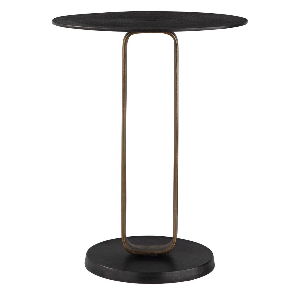 Uttermost 50005 Aperture Brass Cast Aluminum Accent Table with Black Top & Base