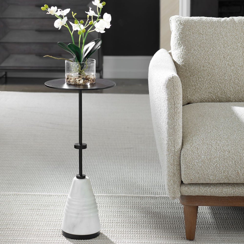 Uttermost 50059 Kincaid Metal Drink Table with Carved Marble Base and Black Round Top