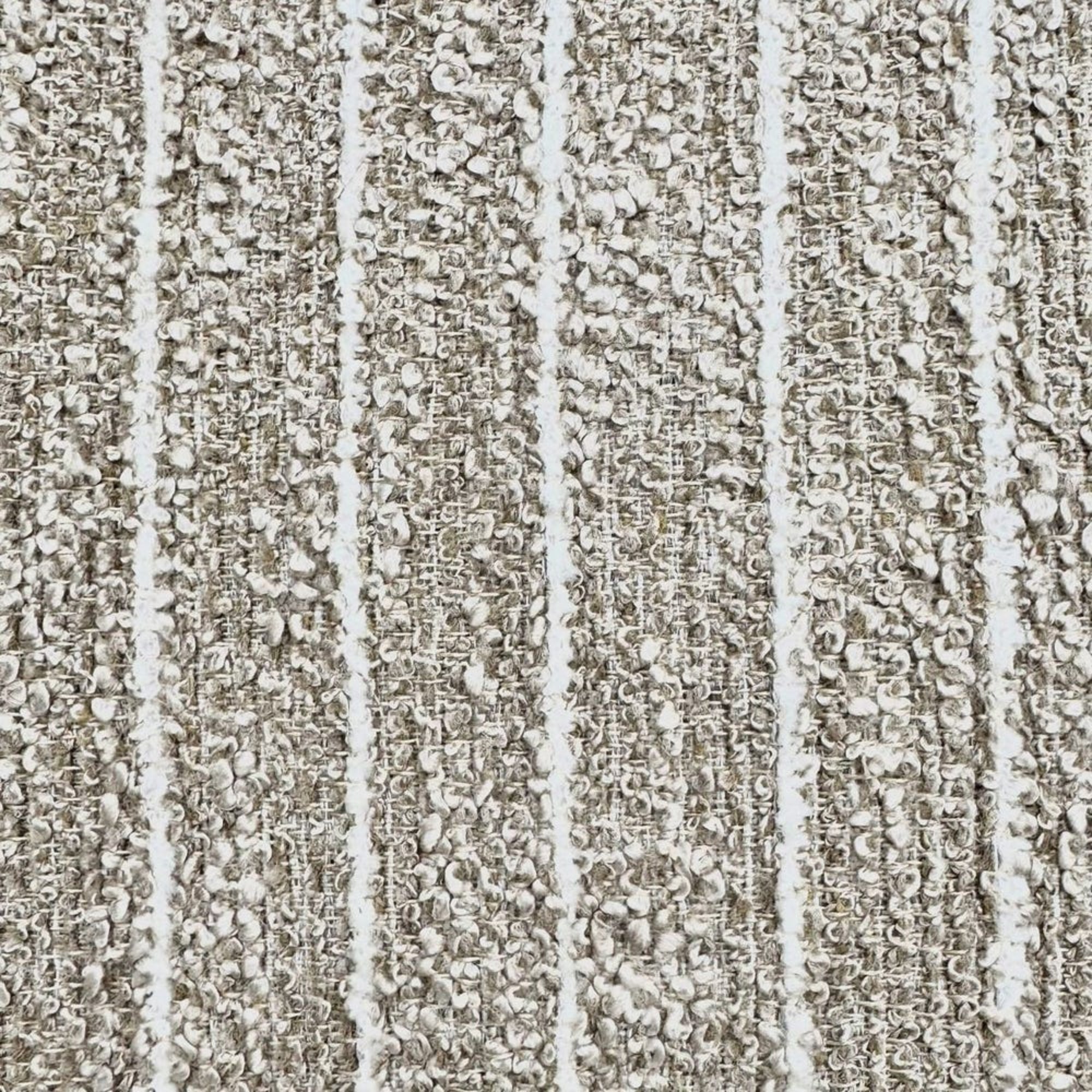 • Putty boucle texture paired with a crisp cream stripe for soft contrast.