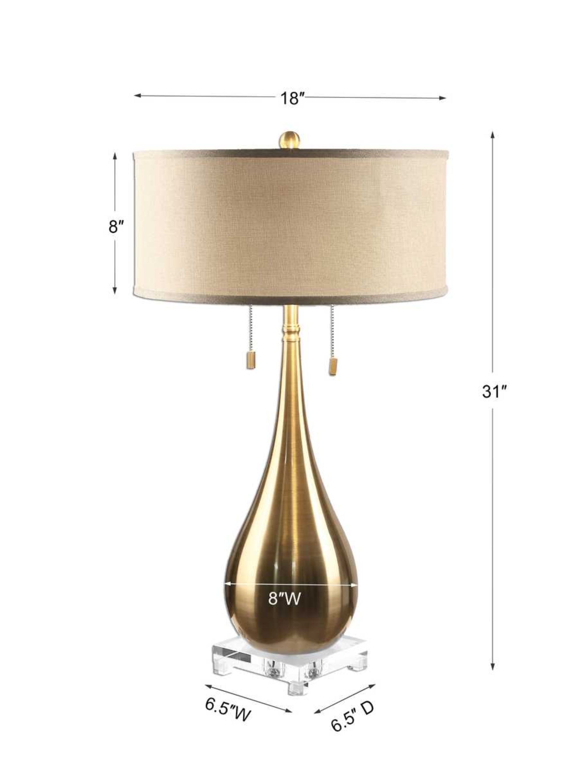 Uttermost Lagrima Brushed Brass Lamp – Elegant Metal & Crystal Table Lamp