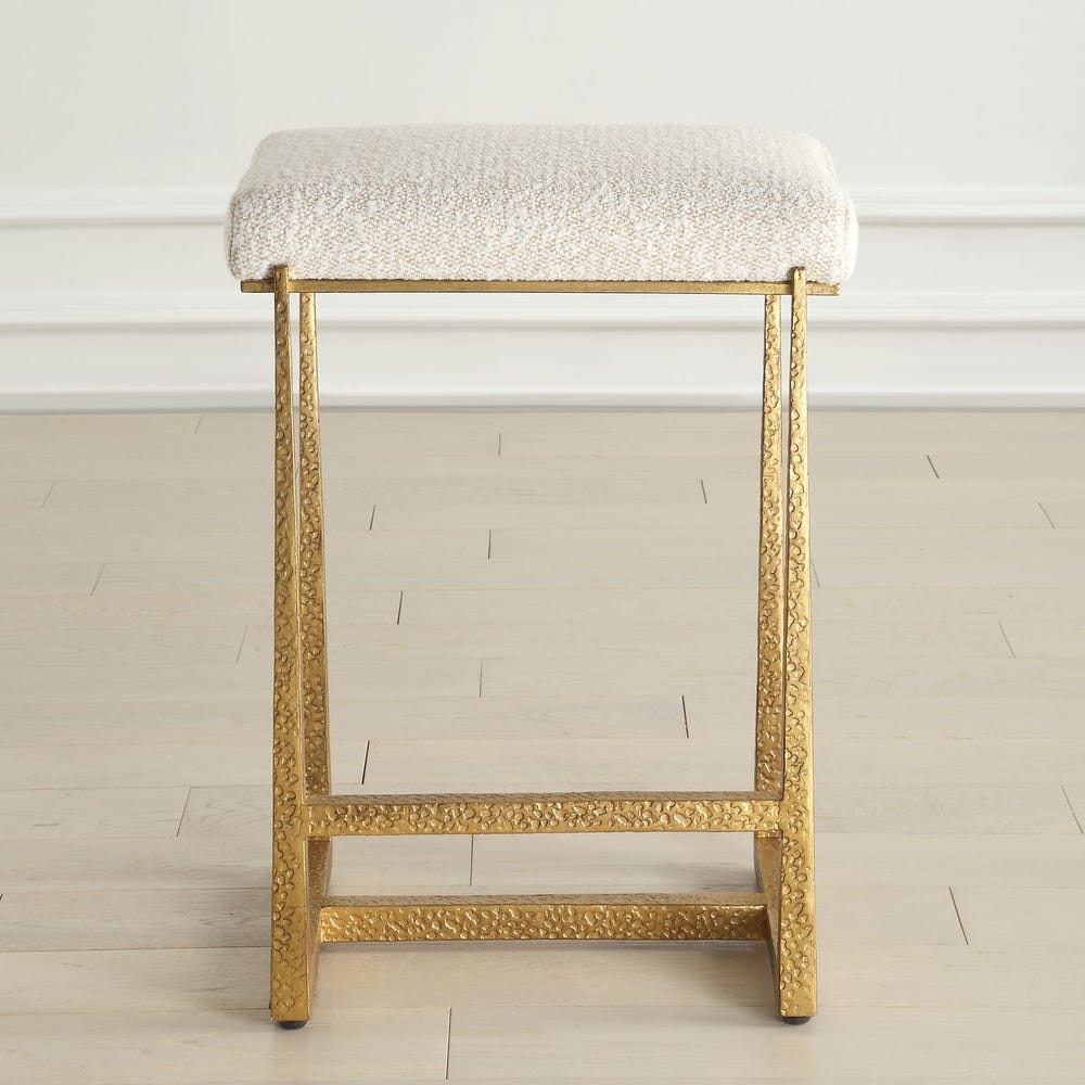 Uttermost – Midas Gold Counter Stool, 18.5"x26"x15.5", Driftwood Polyester Blend Seat, Antique Gold Iron Legs, Modern Luxury