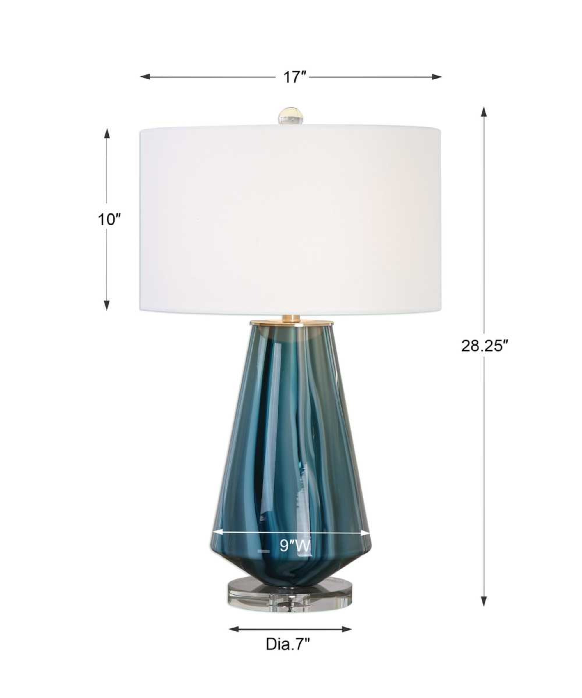 $300 – $400,contemporary glass lamp,decorative glass table lamp,designer table lamp,elegant designer lamp,Lamps,living room accent lamp,modern teal-gray lamp,Pescara,Teal-Gray Glass Lamp,teal-gray glass table lamp,transitional accent lamp,Uttermost,Uttermost glass lamp,Uttermost home lighting,Uttermost Pescara lamp,xmas