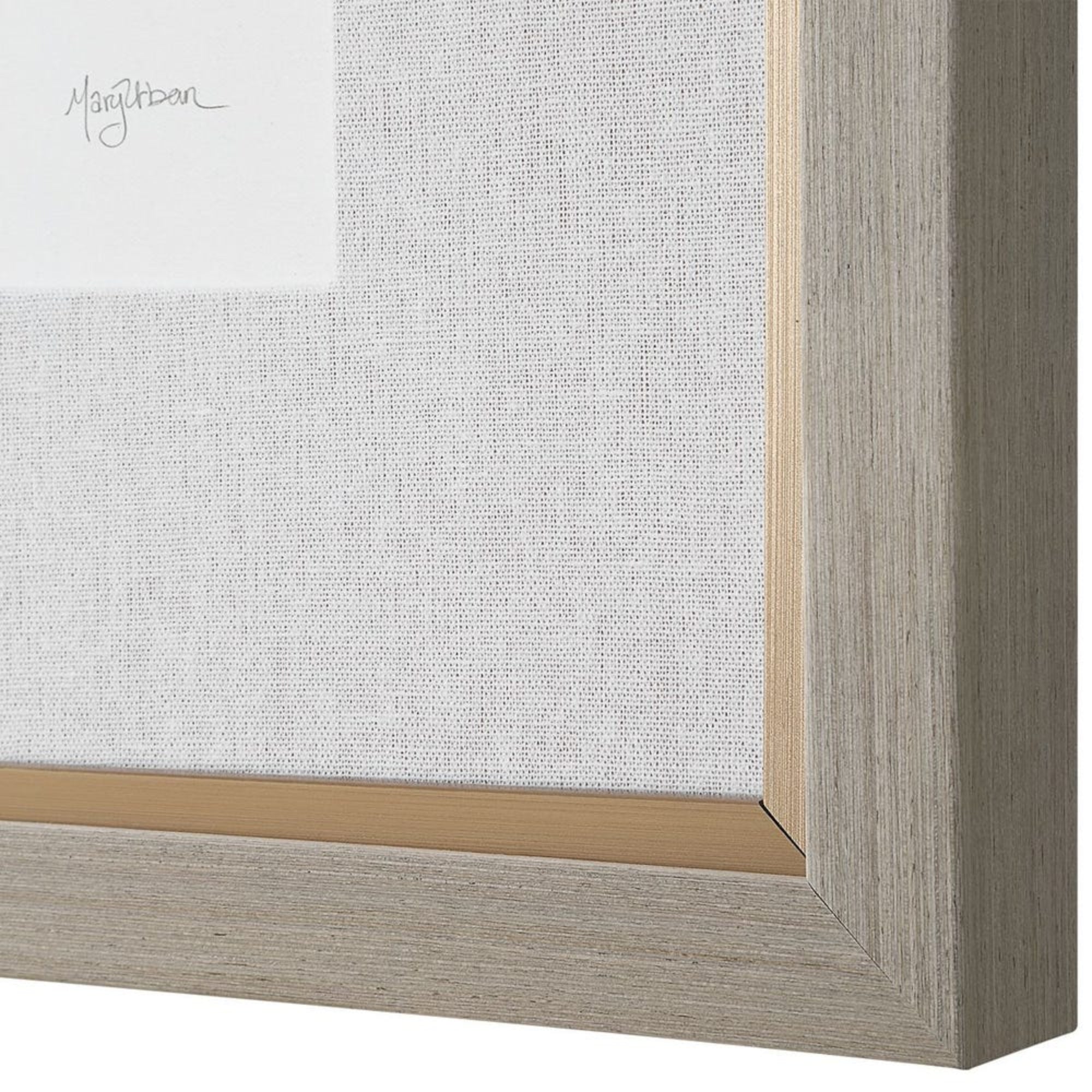 - Refined Framing: Light gray wood frame with champagne liner under glass.