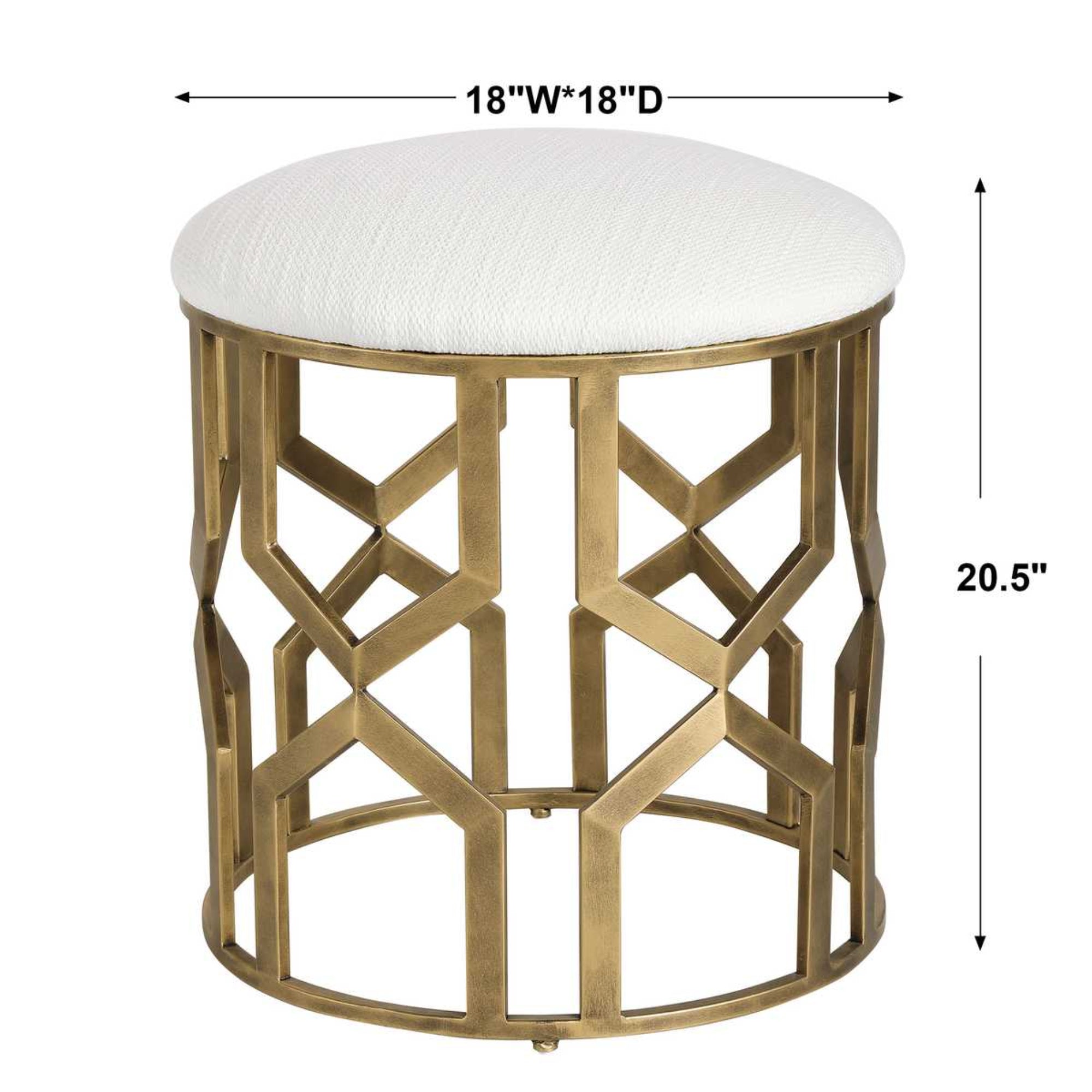 $300 – $400,Accent Furniture,Accent Stools,brass and white stool,compact accent stool,contemporary side stool,decorative geometric stool,foam cushioned stool,geometric accent stool,modern upholstered stool,stylish white fabric stool,Trellis,Uttermost,Uttermost accent furniture,Uttermost Trellis stool