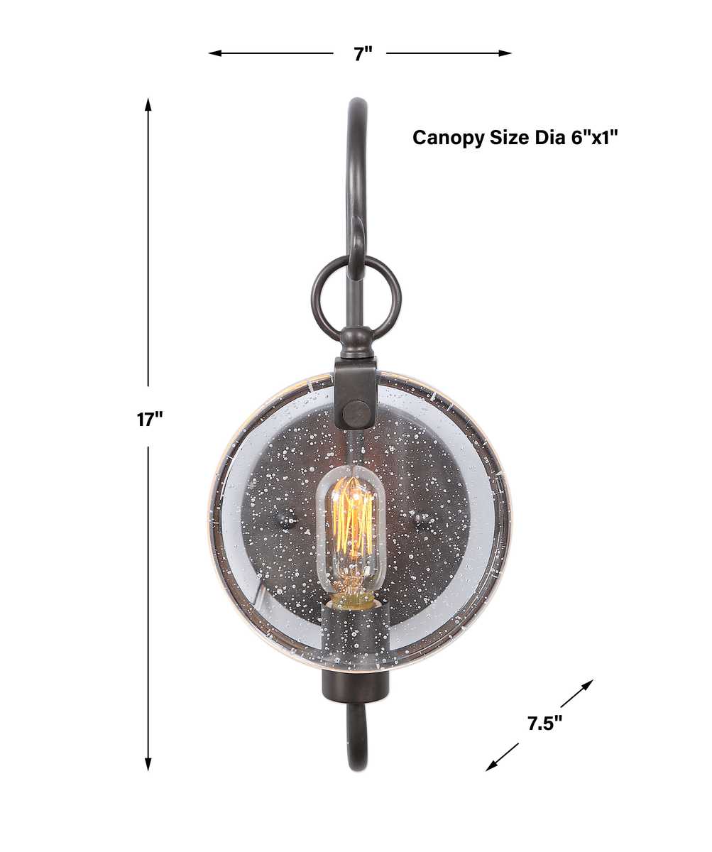 Uttermost Whitten 1-Light Wall Sconce – 17"H x 7"W Acid Oxidized Dark Bronze with Seeded Glass Focal Ring