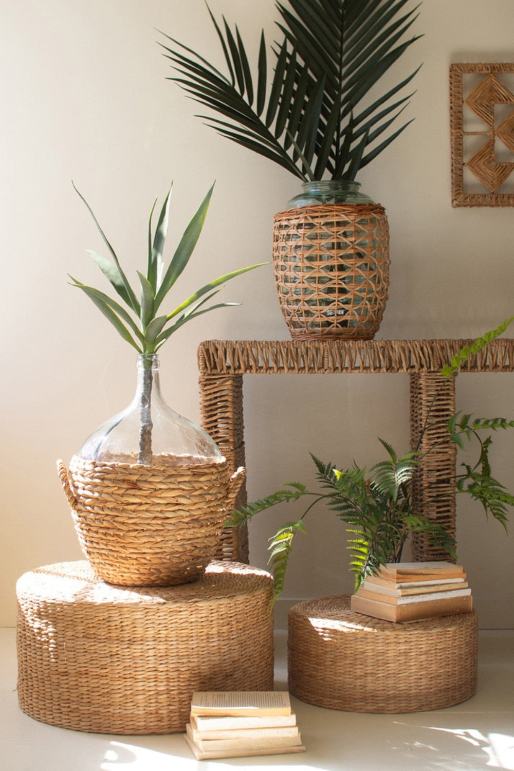 - Made from natural water hyacinth and glass for a handcrafted finish