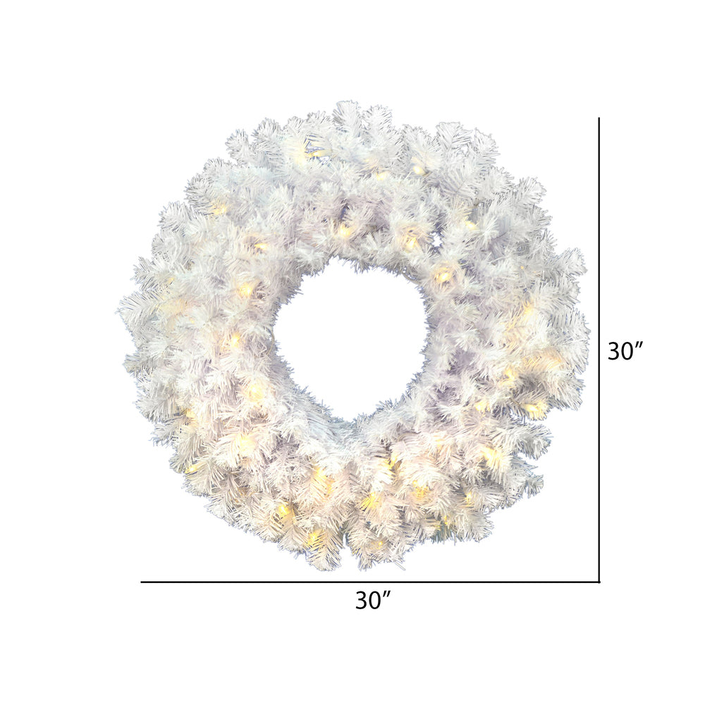 The Vickerman A805831LED 30" Crystal White Spruce Artificial Christmas Wreath with Pure White LED Mini Lights offers a beautiful and modern option for holiday decorating. Here's an overview of its features: