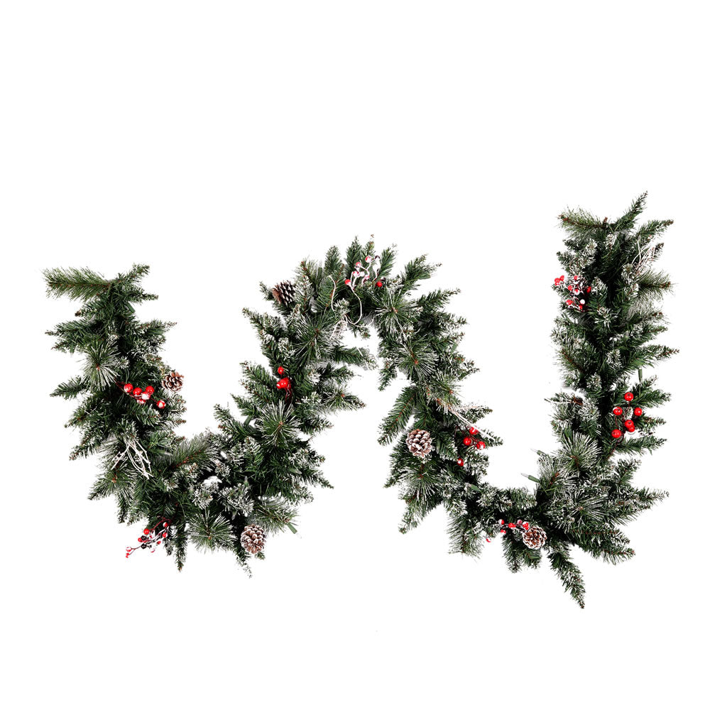 - Material: Artificial foliage made from synthetic materials designed to resemble pine branches, with realistic snow-tipped details and berry decorations.