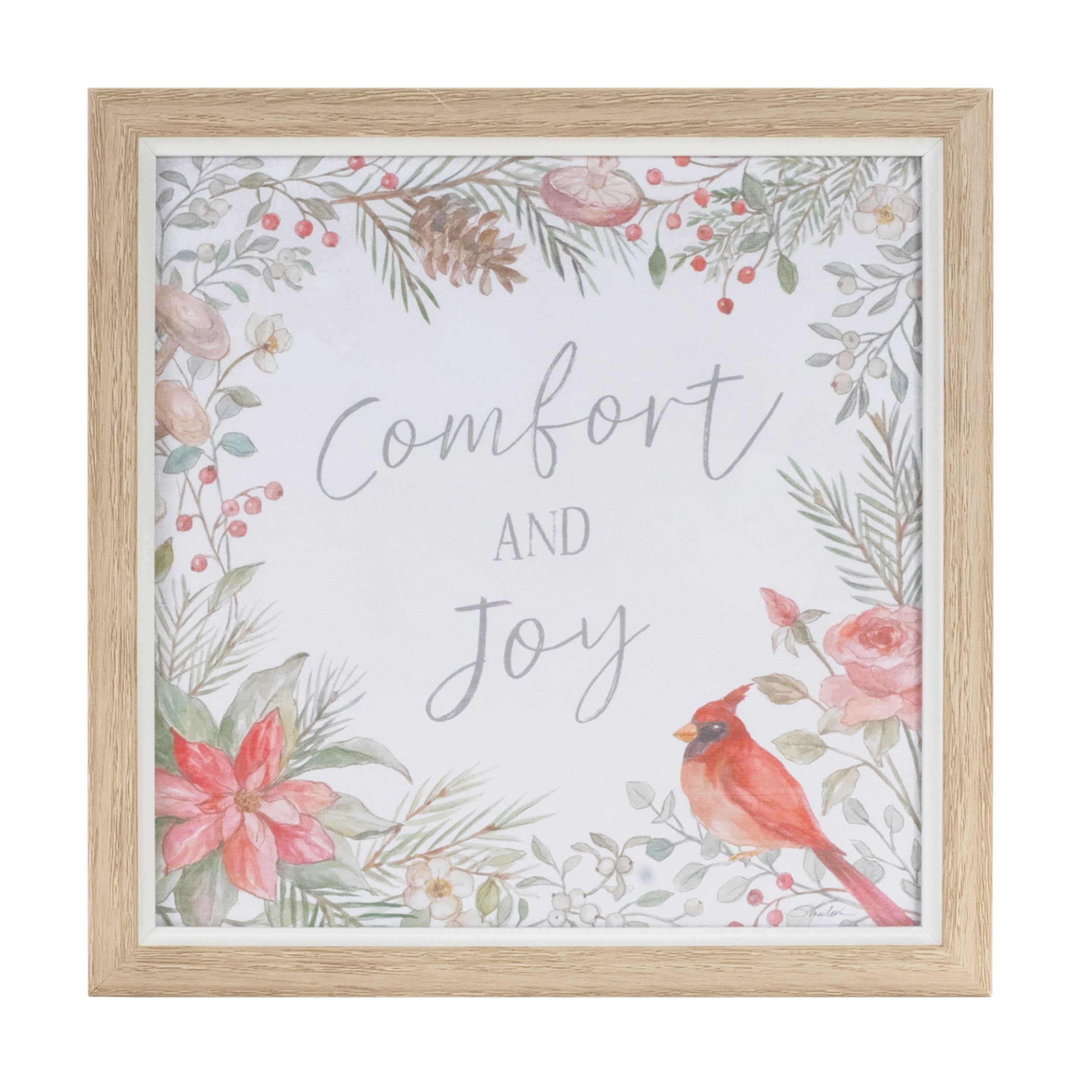 Transform your home into a cozy holiday retreat with this charming set of Framed Cardinal Bird Prints by Melrose. Each 9" square print features vibrant red cardinals amidst winter foliage, paired with heartwarming sentiments like "All Hearts Come Home for Christmas," "Comfort and Joy," and "Merry and Bright." Crafted with durable plastic and paper, these framed prints add a timeless touch of seasonal cheer to any room. Perfect for mantels, walls, or as part of a gallery display, this set of three assorted designs creates a balanced and festive look for your holiday decor.