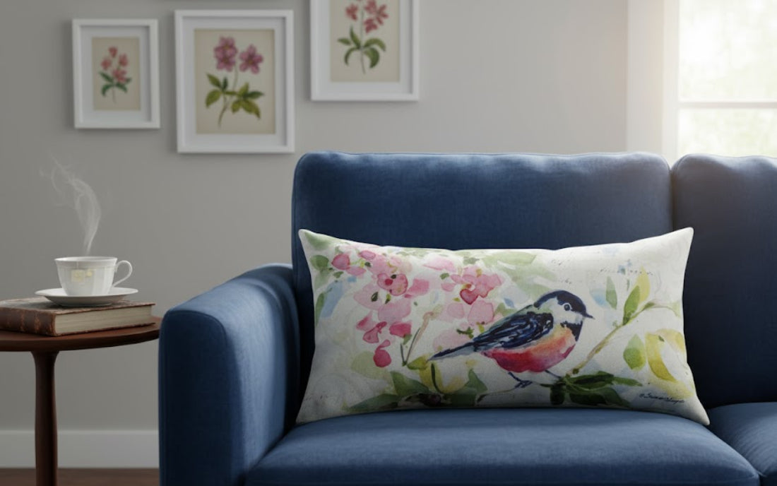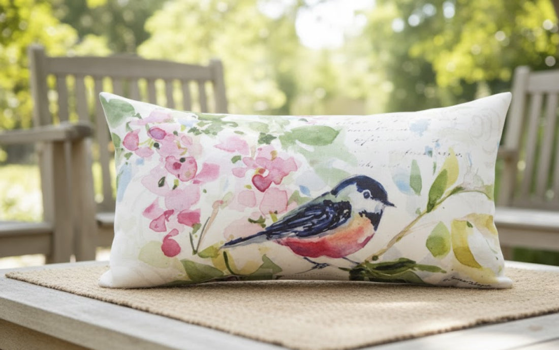 Watercolor Birds & Butterflies Climaweave Pillow – 17x9 inch Accent by Manual Woodworkers