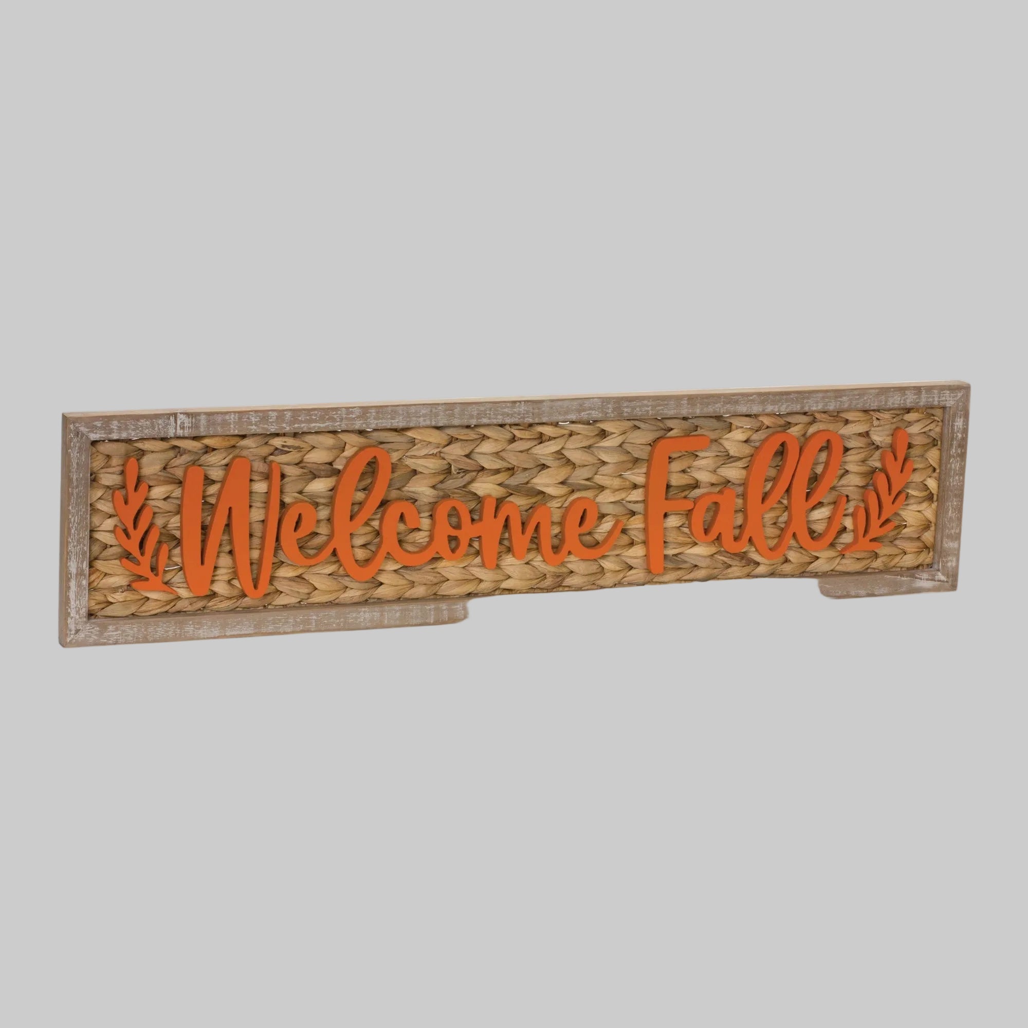 Welcome Fall Sign Christmas Decor – Brown and Orange Wood/Water Hyacinth – 7.5"H – By Melrose