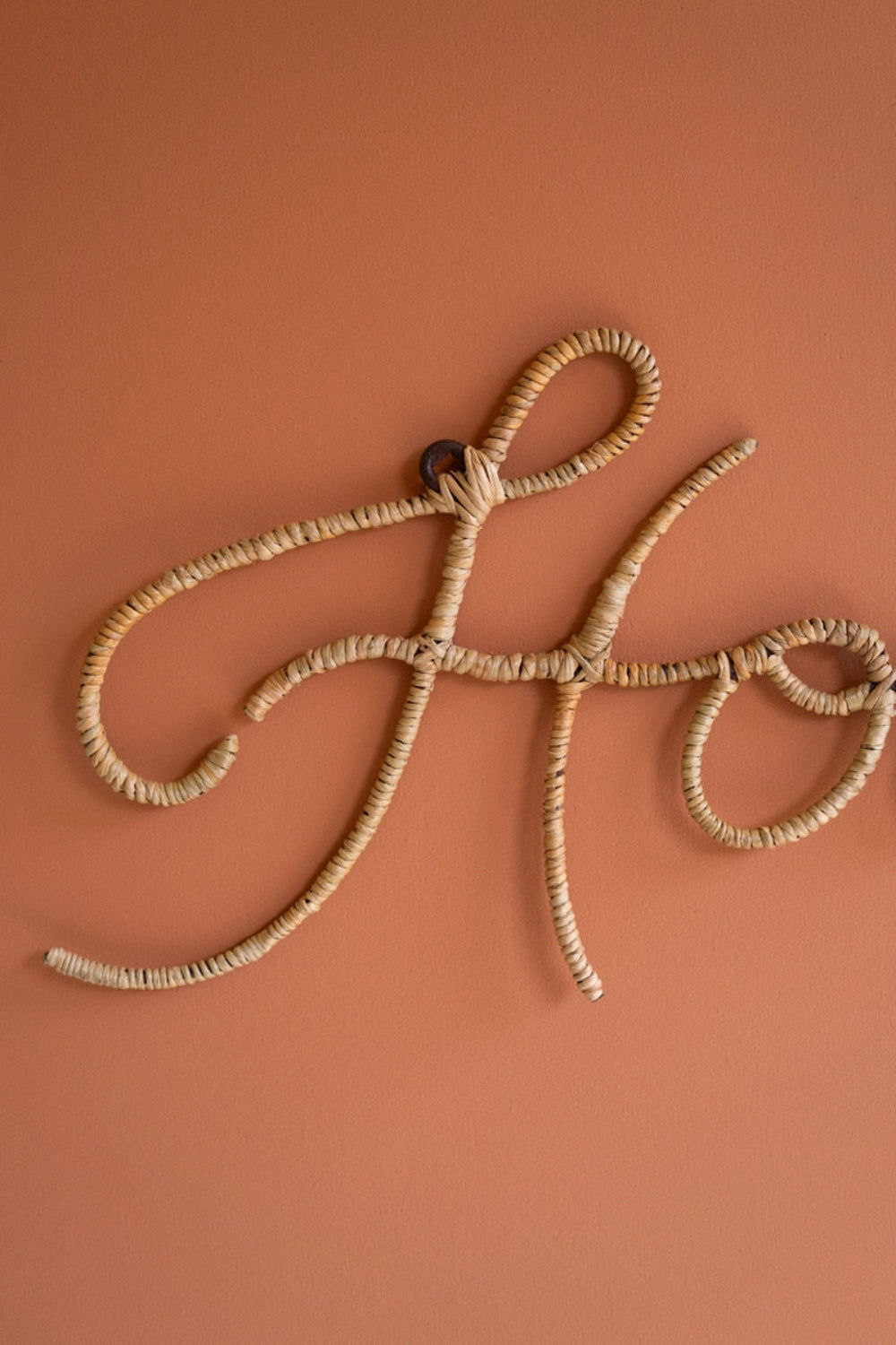 Add a friendly greeting to your home with the Seagrass and Iron "Howdy" Wall Decor by Kalalou. This statement piece is handcrafted using woven seagrass over a sturdy iron frame, making it both lightweight and durable. Measuring 20" long × 3.5" deep × 27" tall, it offers dimensional texture and natural tone that complements a wide range of styles—from rustic lodge and farmhouse to modern boho and western-inspired decorPerfect for a hallway, mudroom, front porch (covered area recommended), living room, or guest bedroom, this unique wall accent brings a warm and welcoming personality to any space.